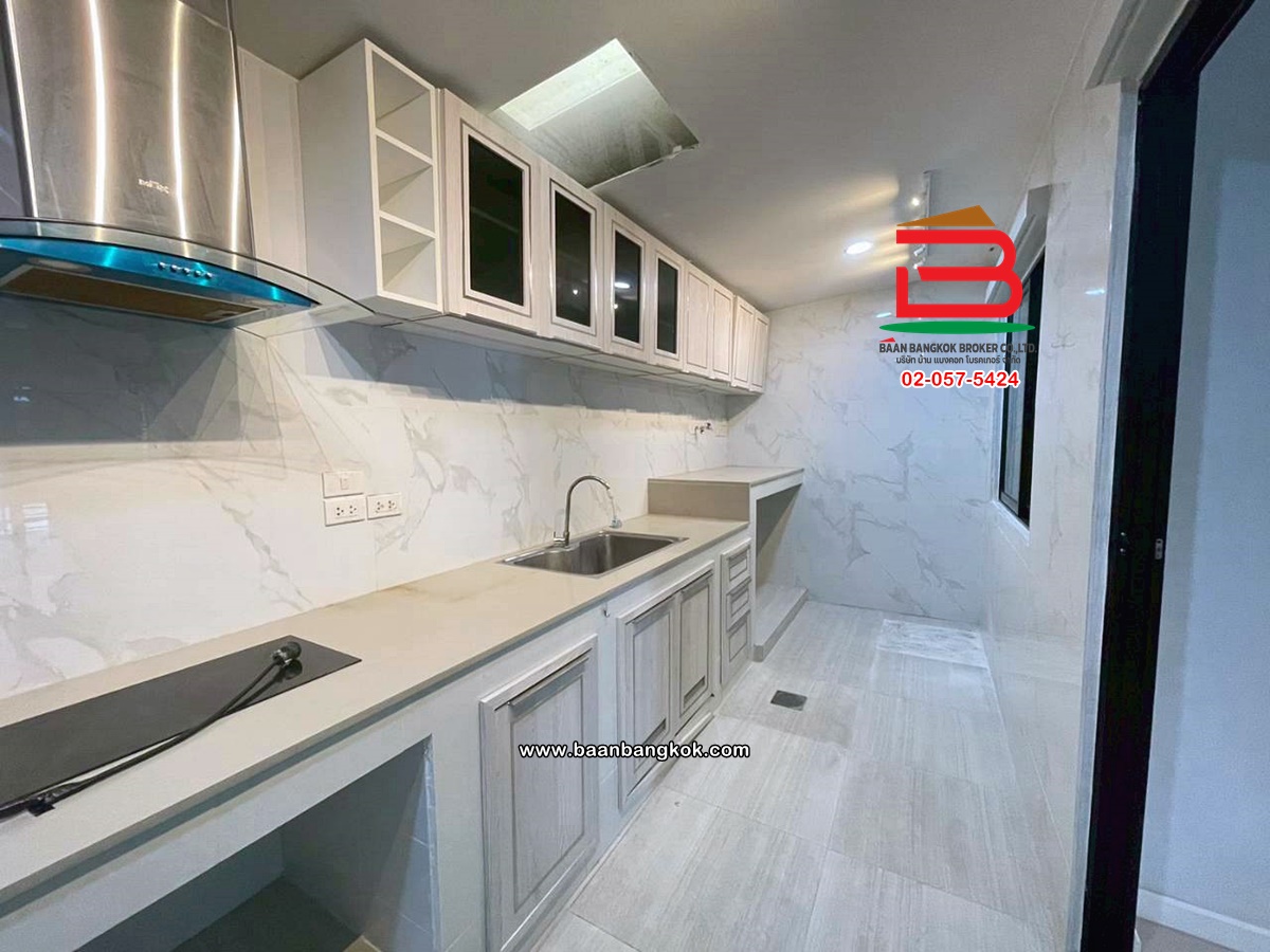 การตกแต่ง: บ้านใหม่ต่อเติมเรียบร้อย ห้องครัว built in ติดตั้งแอร์ 4 เครื่อง, ปั๊มน้ำ+แทงค์น้ำ ยังไม่มีผู้อยู่อาศัย พื้นชั้นล่างปูกระเบื้องให้เรียบร้อย มีพื้นที่ด้านข้างสามารถทำเป็นสวนหย่อมขนาดย่อมได้ บรรยากาศร่มรื่น เงียบสงบ การเดินทางเข้าออกสะดวกหลายช่องทาง