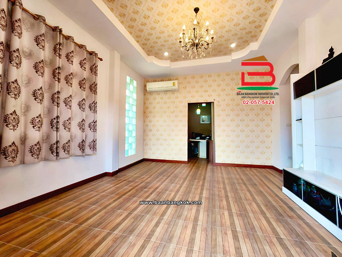 ประเภททรัพย์สิน : บ้านเดี่ยว 1 ชั้น แบบยกสูงด้วยบันได 4 ขั้น (หลังมุม) ฟังก์ชั่น 2 ห้องนอน 2 ห้องน้ำ 1 ห้องพระ 1 ห้องทำงาน 1 ห้องรับแขก 1 ห้องครัว แยกห้องทานข้าว และมีระเบียง พร้อมที่จอดรถในบ้านได้ 3 คัน ห้องน้ำห้องนอน Master เป็นอ่างจากุซซี่ ใกล้สิ่งอำนวยความะดวก