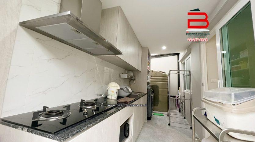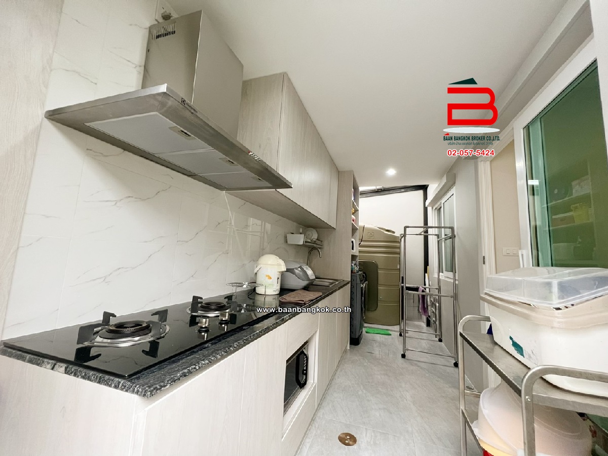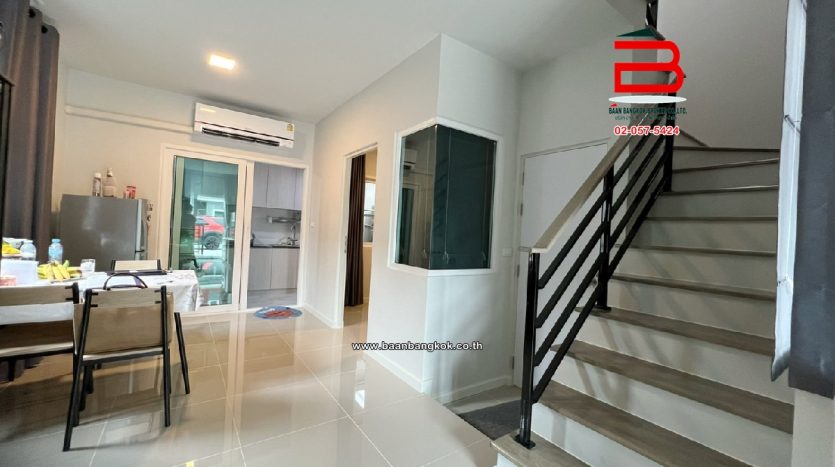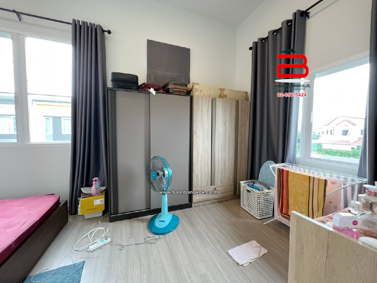 การตกแต่ง: ภายในมีเฟอร์ฯบางส่วน มีปั้มน้ำ+แท็งค์น้ำ แอร์ 2 ตัว พื้นล่างปูด้วยแกรนิตโต้ พื้นบนปูด้วยลามิเนต ติดไฟดาวน์ไลท์ ตกแต่งด้วยชุดผ้าม่าน บิ้วอินเคาน์เตอร์ครัว ชั้นวางของ ซิงค์ล้างจาน เครื่องดูดควัน ต่อเติมหลังคาหน้าบ้าน พร้อมทำรั้วระแนงกั้นด้านข้างและด้านหลังเพิ่มความเป็นส่วนตัว ประตูหน้าต่างเป็นกระจกสไลด์ จอดรถในบ้านได้ 1 คัน หน้าบ้านกว้าง 5 เมตร และมีสิ่งอำนวยความสะดวกภายในโครงการ อาทิเช่น cctv , รปภ 24 ชม. , สนามเด็กเล่น , สระว่ายน้ำ , สโมสร