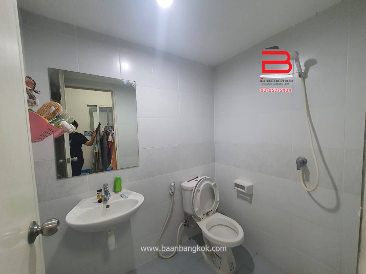 การตกแต่ง : ภายในบ้านมีพื้นที่ใช้สอยเหมาะกับวิถีชีวิตในปัจจุบัน ชั้นล่างมี 1 ห้องนอน เหมาะเป็นห้องทำงานหรือห้องผู้สูงอายุได้เป็นอย่างดี ห้องน้ำ 1 ห้องครัว 1 ห้อง ชั้นบนมี 3 ห้องนอน 1 ห้องน้ำ พื้นปูกระเบื้องลามิเนต ติดเหล็กดัด มีปั้มน้ำ+เเท็งค์น้ำ พร้อมแอร์ 3 เครื่อง ภายในโครงการมีสาธารณูปโภค อาทิ เช่น รปภ.24ชั่วโมง