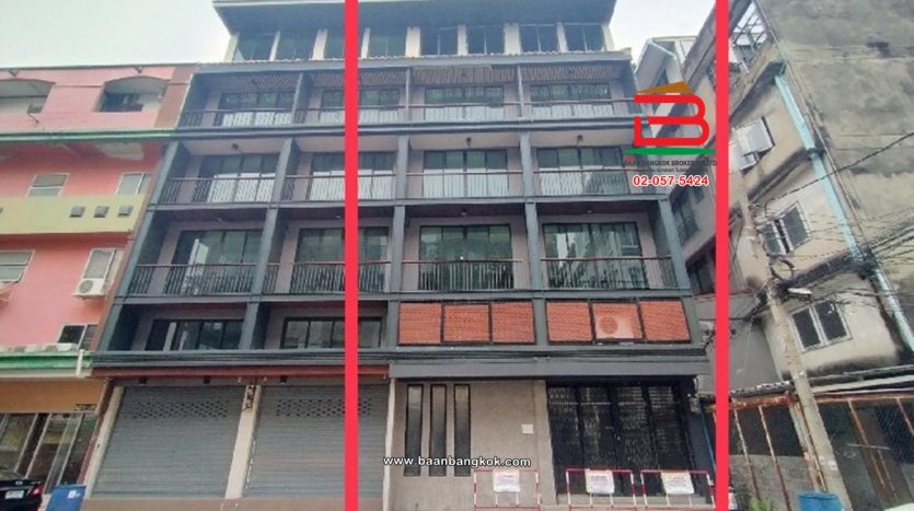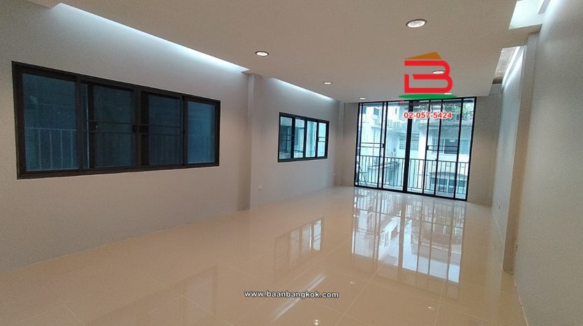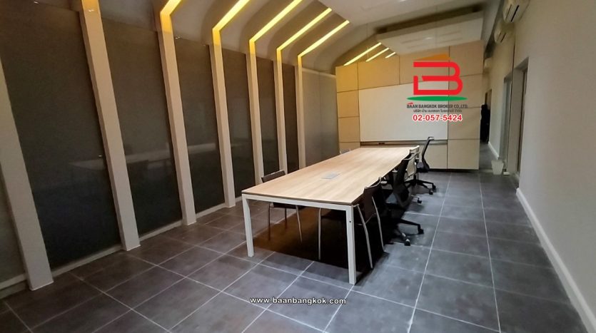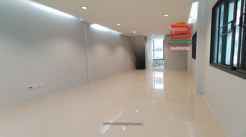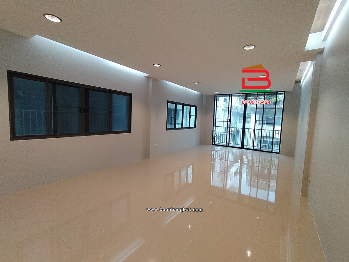 การตกแต่ง: ตกแต่งสวย สไตล์โมเดิร์น ชั้นล่างตกแต่งเป็นออฟฟิศสำนักงาน มีห้องประชุมใหญ่ พื้นปูด้วยกระเบื้อง เฟอร์นิเจอร์บิวท์อิน แอร์ฝังและแบบแขวน 4 เครื่อง ตกแต่งวอลเปเปอร์ ห้องน้ำทุกชั้น ติดไฟดาวน์ไลท์ ชั้น 2-4 กั้นห้อง สามารถตกแต่งเป็นห้องทำงาน ห้องผู้บริหาร ห้องพักผ่อน เหมาะสำหรับทำห้องผู้บริหาร ห้องทำงาน โชว์รูมแสดงสินค้า มีชั้นลอยไว้เก็บเอกสาร ชั้น 5 เป็นลานอเนกประสงค์ เหมาะสำหรับทำเป็นสำนักงาน/คลังสินค้า/โชว์รูม/กลุ่ม Startup หรือ SME