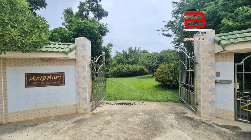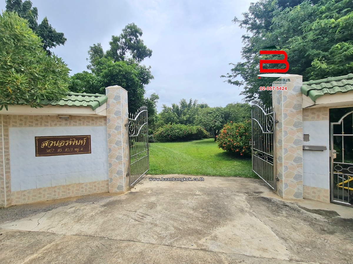 ประเภททรัพย์สิน : ที่ดินสวน-บ้าน 3 หลัง พร้อมบ้านพักคนงาน ประตูรั้วหน้าบ้าน ทำด้วยสแตนเลส ล้อมรั้วรอบที่ดิน ปลูกต้นไม้ใหญ่ และเล็กไว้รอบบ้าน 3 หลัง ทำศาลานั่งเล่นไว้ 3 จุด ด้านหลังบ้านขุดคลองไว้สำหรับพายเรือเล่น และมีศาลาริมน้ำ บ้านมี 3 หลัง ภายในติดมุ้งลวด-เหล็กดัด และมีแอร์ทั้งหมด 9 เครื่อง พื้นปูด้วยกระเบื้องแกรนิตโต้ แถมมีห้องคาราโอเกะ และห้องนั่งเล่น ไว้สำหรับประชุม-ทานกาแฟ มี 2 ห้องครัว ครัวนอก-ใน และมีบ้านรับรอง มี 3 ห้องนอน มีห้องน้ำพร้อม เหมาะสำหรับทำ รีสอร์ทขนาดใหญ่ วิวสวย ธรรมชาติสุดๆ