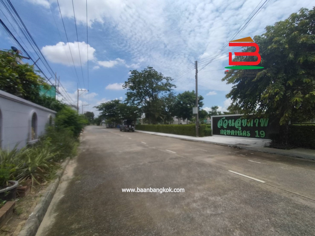 ประเภททรัพย์สิน : ที่ดินเปล่า แปลงมุม รูปแปลงสี่เหลี่ยมจตุรัส หน้ากว้าง 25 เมตร ลึก 26 เมตร ที่ดินหันหน้าทางทิศเหนือ อยู่ภายในโครงการ กฤษดานคร 19 คลองหลวง 24 ขายถูกกว่าราคาประเมินกรมที่ดิน ถนนด้านหน้าแปลงเป็นคอนกรีต ถนนกว้าง 2 เลน มีเพื่อนบ้านฝั่งตรงข้าม ร่มรื่น ด้านหลังเป็นคูน้ำเล็กๆ จากทะเลสาบภายในหมู่บ้าน เหมาะปลุกบ้านอยู่อาศัย ทำออฟฟิศ พร้อมส่วนกลาง มีสิ่งอำนวยความสะดวก เช่น สระว่ายน้ำ, ระบบรักษาความปลอดภัย 24 ชั่วโมง, สนามเด็กเล่น, กล้อง CCTV เดินทางสะดวกใกล้ถนนใหญ่ รายล้อมด้วย มหาวิทยาลัย ห้างสรรพสินค้า ตลาดค้าส่ง ร้านสะดวกซื้อ