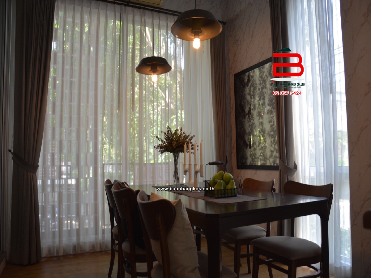 ประเภททรัพย์สิน : ทาวน์โฮม ตกแต่งสไตล์ญี่ปุ่น หลังมุม หน้ากว้าง 5.5 เมตร สูง 3.5 ชั้น พร้อมอยู่ มี 3 ห้องนอน 3 ห้องน้ำ 1 ห้องครัว 1 ห้องรับแขก ทำเลดี ถนนทางเข้าโครงการแบบมีเกาะกลางกว้าง 19 เมตร