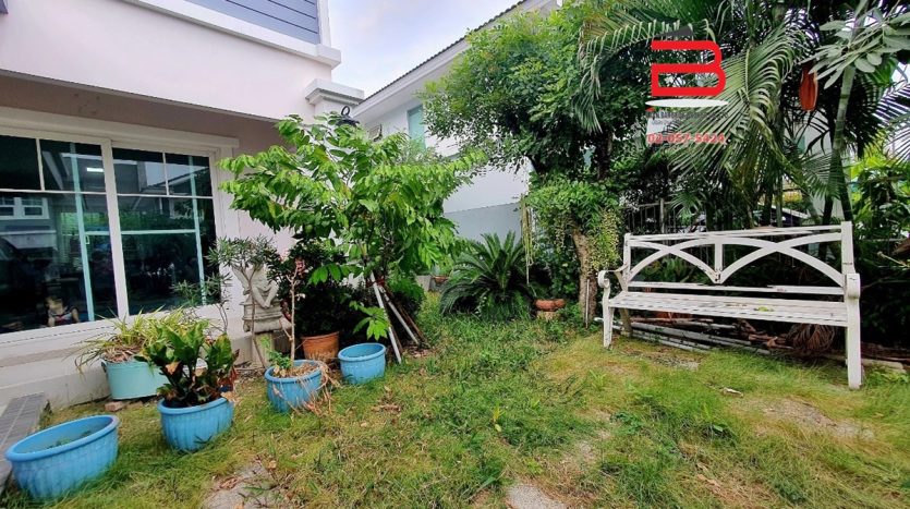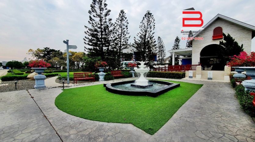 การตกแต่ง: พื้นชั้นล่างปูแกรนิตโต้ ชั้นบนปูลามิเนต ทาสีบ้านเป็นโทนอ่อน ดูสบายตา มีพื้นที่สวนภายในบ้าน ต่อเติมหลังคาที่จอดรถ สิ่งอำนวยความสะดวกครบ อาทิ รปภ.24 ชม., สระว่ายน้ำ, ฟิตเนส, สวนขนาดใหญ่