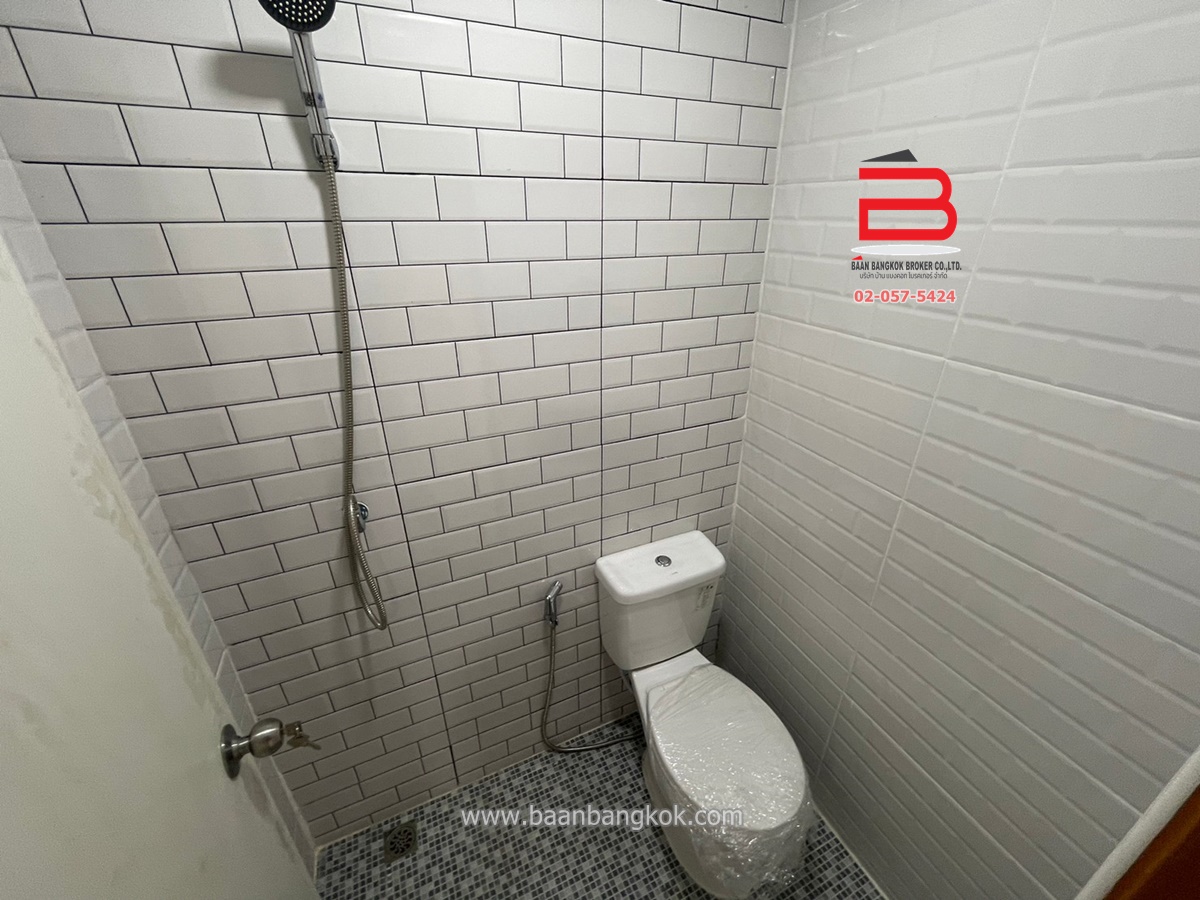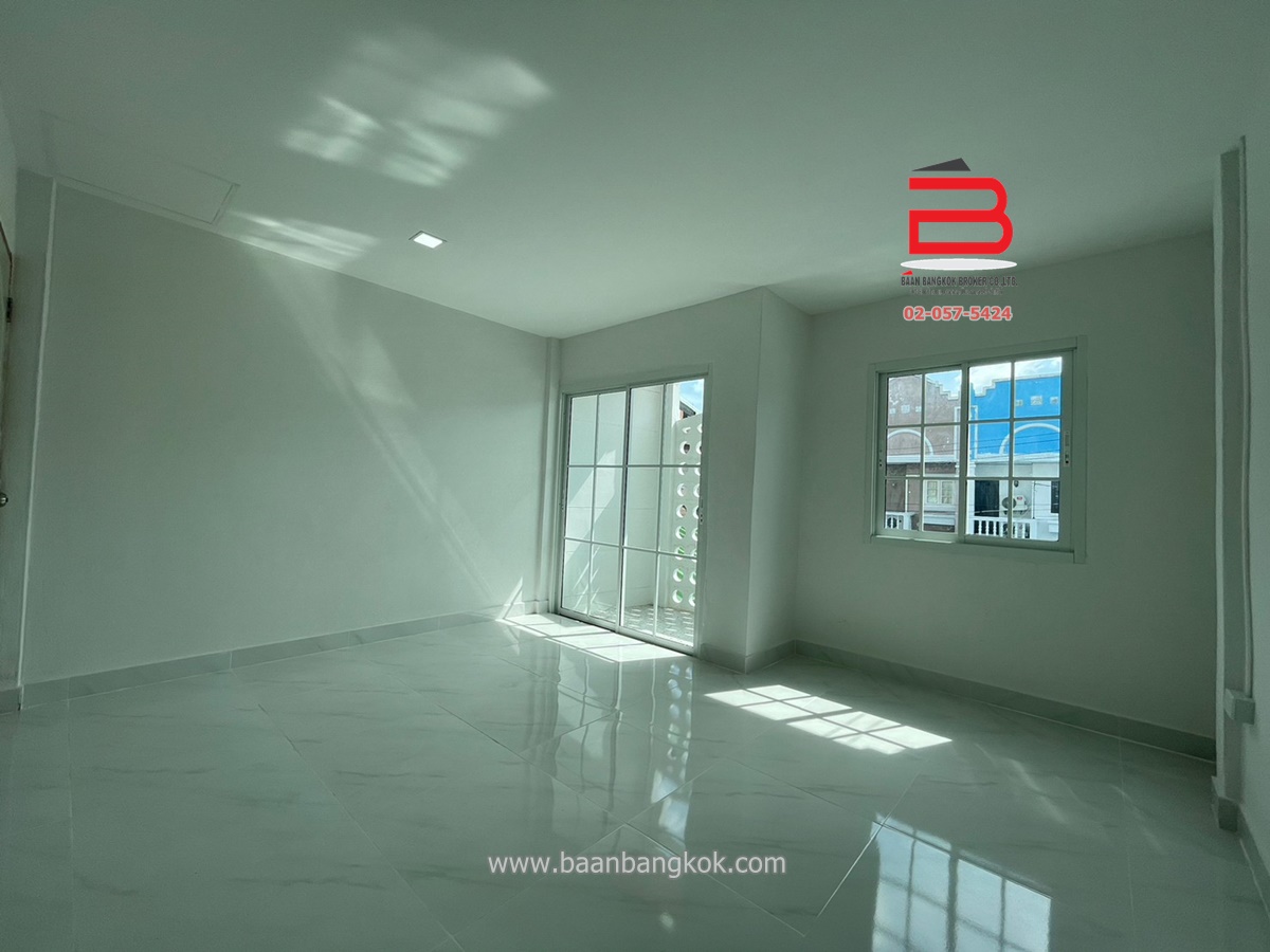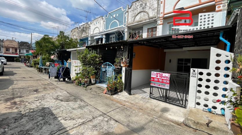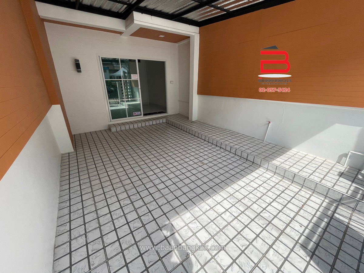 การตกแต่ง : ปรับปรุงใหม่ทั้งหลัง พื้นชั้นล่างและชั้นบนปูด้วยกระเบื้องเซรามิค ขนาด 60×60 บันไดไม้ มีตู้เสื้อผ้า ฝ้าเพดานเป็นฝ้าหลุมพร้อมซ่อนไฟ LED สไตล์โมเดิร์น สีภายในและฝ้าเพดานสีขาว ภายนอกสีส้มสลับขาวให้ความรู้สึกทันสมัย ห้องครัวพร้อมเคาน์เตอร์ ติดพัดลมดูดอากาศในห้องน้ำทั้ง 2 ห้อง มีปั้มน้ำ+แท็งค์น้ำ