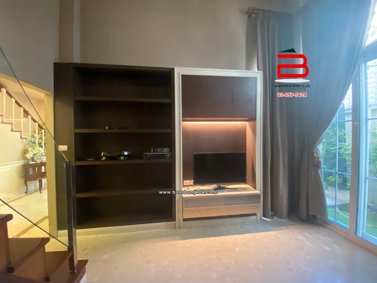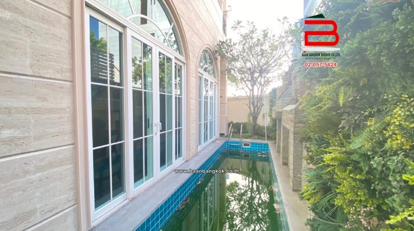 การตกแต่ง: ประตูหน้าบ้านรีโมท ตกแต่งเฟอร์นิเจอร์บิวท์อิน มีเคาน์เตอร์ครัว ติดโคมไฟระย้า 3 ชุด ทีวี 5 เครื่อง, เตาไฟฟ้า, ชุดดูดควัน, โซฟา 7 ที่นั่ง, ผ้าม่าน 2 ชั้นทั้งหลัง, ตู้เย็น 2 เครื่อง, โต๊ะทานข้าว, เครื่องฟอกอากาศ 2 ตัว, เครื่องทำน้ำอุ่น 5 เครื่อง พร้อมแอร์ 7 ตัว ติดตั้งกล้องวงจรปิด ติดตั้งมุ้งลวดกันกระสุน  มีปั้มน้ำ+แท็งค์น้ำ สระว่ายน้ำ 2 เมตร x 10 เมตร พร้อมน้ำตก