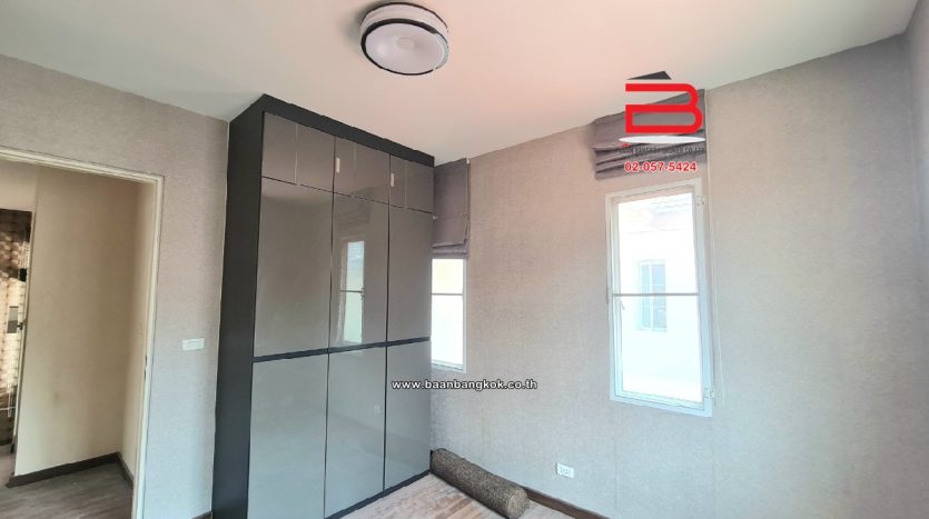 การตกแต่ง: พื้นชั้นล่างปูแกรนิตโต้ พื้นชั้นบนปาร์เก้ ครัวบิวท์อิน ติดผ้าม่าน ติดมุ้งลวด+เหล็กดัด บ้านต่อเติมรอบบ้าน ปูพื้นกระเบื้องหน้าบ้าน+ข้างบ้าน (บ้านต้องเข้าไปรีโนเวทใหม่ก่อนอยู่) ภายในโครงการมีสิ่งอำนวยความสะดวก อาทิ เช่น รปภ.24ชม., CCTV,สวนสาธารณะ,ลานสุขภาพ