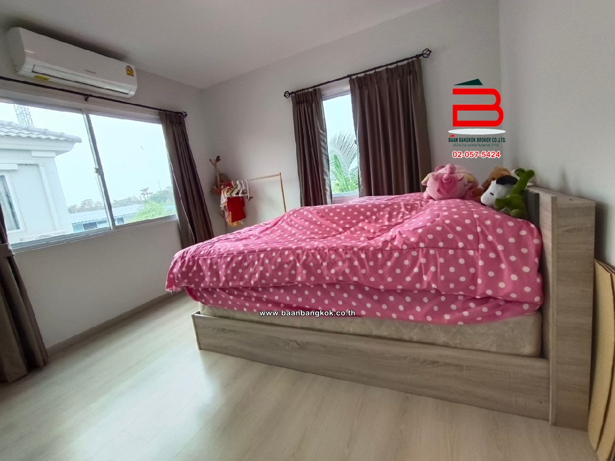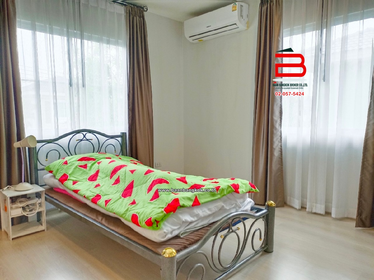 การตกแต่ง: บ้านสไตล์ยุโรป ชั้นล่างปูพื้นด้วยแกรนิตโต้ ชั้นบนปูลามิเนต(ขนาด 8 มม.)ลายไม้สีน้ำตาลอ่อน ตัวบ้านขนาด กว้าง 6 เมตร X ลึก 9 เมตร ภายใน มีเฟอร์บางส่วน แอร์ 4 เครื่อง ติดมุ้งลวด มีปั้มน้ำ-แท็งค์น้ำ และในโครงการมีสิ่งอำนวยความสะดวก อาทิ สระว่ายน้ำ, ฟิตเนส, สวนสาธารณะ, ทะเลสาบ, CCTV, ระบบรักษาความปลดภัย 24 ชม, ประตูเข้า-ออก ระบบคีย์การ์ด