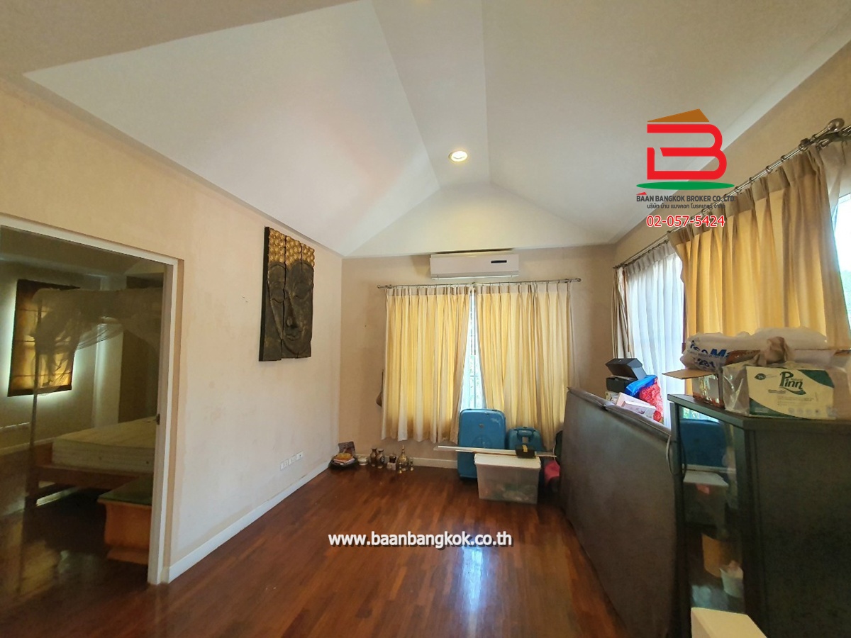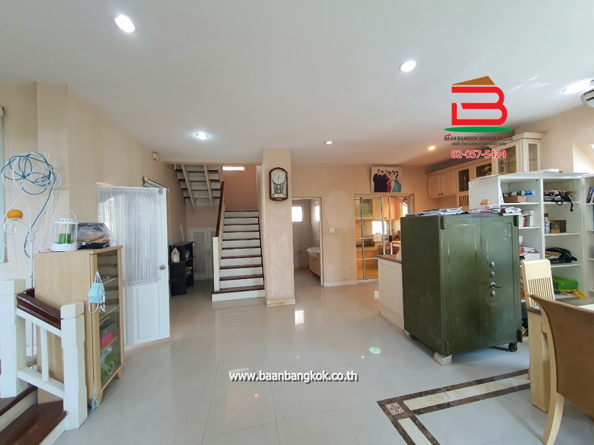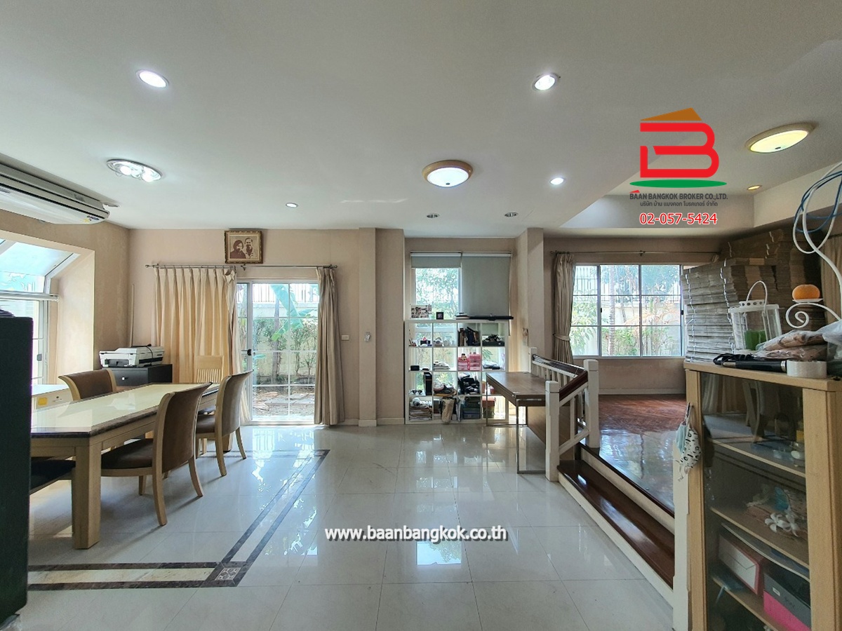 การตกแต่ง : พื้นชั้นล่างปูกระเบื้องแกรนิตโต้ พื้นชั้นบนปูลามิเนต หน้าห้องครัวมีเคาน์เตอร์บาร์ ติดมุ้งลวดอย่างดี+ผ้าม่านม้วนไม่เก็บฝุ่นทั้งหลัง พร้อมแอร์ 3 เครื่อง มีพื้นที่ด้านข้างทำเป็นสวนพักผ่อน มีระบบรดน้ำต้นไม้อัตโนมัติ มีระบบปิด-เปิดประตูอัตโนมัติ ภายในโครงการมีสิ่งอำนวยความสะดวกอีกมากมาย อาทิ เช่น รปภ.24ชม., CCTV,สวนหย่อม,น้ำพุ, ฟิตเนส, สระว่ายน้ำ