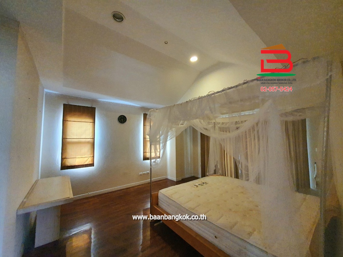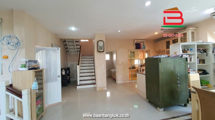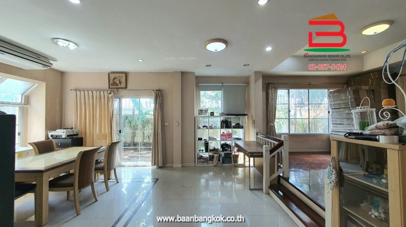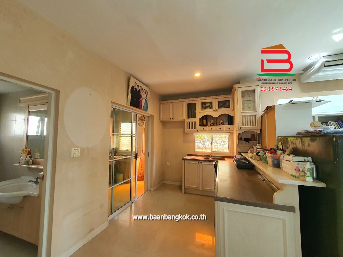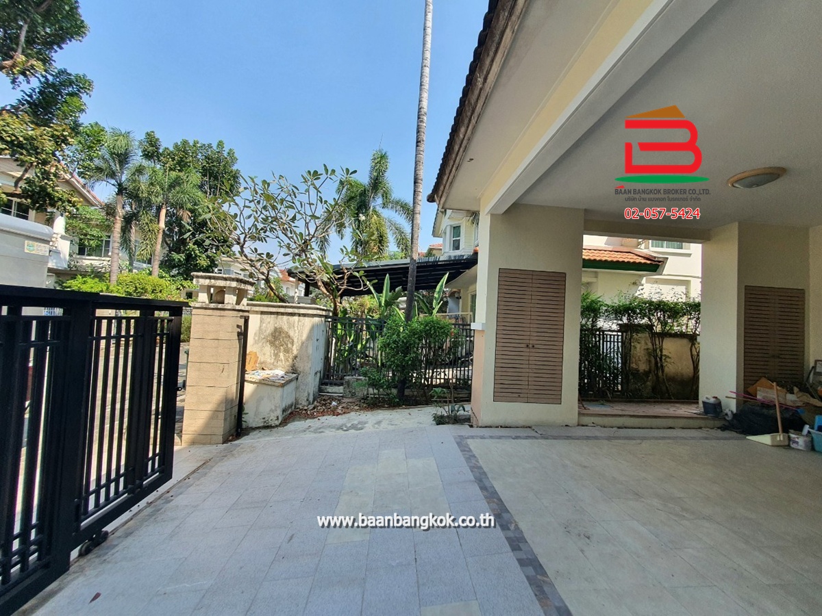 การตกแต่ง : พื้นชั้นล่างปูกระเบื้องแกรนิตโต้ พื้นชั้นบนปูลามิเนต หน้าห้องครัวมีเคาน์เตอร์บาร์ ติดมุ้งลวดอย่างดี+ผ้าม่านม้วนไม่เก็บฝุ่นทั้งหลัง พร้อมแอร์ 3 เครื่อง มีพื้นที่ด้านข้างทำเป็นสวนพักผ่อน มีระบบรดน้ำต้นไม้อัตโนมัติ มีระบบปิด-เปิดประตูอัตโนมัติ ภายในโครงการมีสิ่งอำนวยความสะดวกอีกมากมาย อาทิ เช่น รปภ.24ชม., CCTV,สวนหย่อม,น้ำพุ, ฟิตเนส, สระว่ายน้ำ
