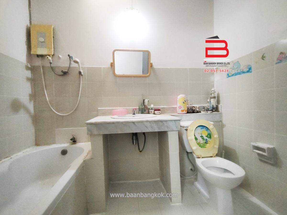 การตกแต่ง: บ้านสภาพพร้อมอยู่ พื้นชั้นล่างปูหินอ่อน ประกอบด้วย 1 ห้องโถงรับแขก 1 ห้องครัว 1 ห้องน้ำ ชั้นบนพื้นปูไม้ปาร์เก้ มี 3 ห้องนอน 1 ห้องน้ำ ภายในติดเหล็กดัด+มุ้งลวด มีปั้มน้ำ+แท็งค์น้ำ แอร์ 1 เครื่อง ภายในโครงการมีสาธารณูปโภค อาทิ รปภ.24ชั่วโมง,CCTV