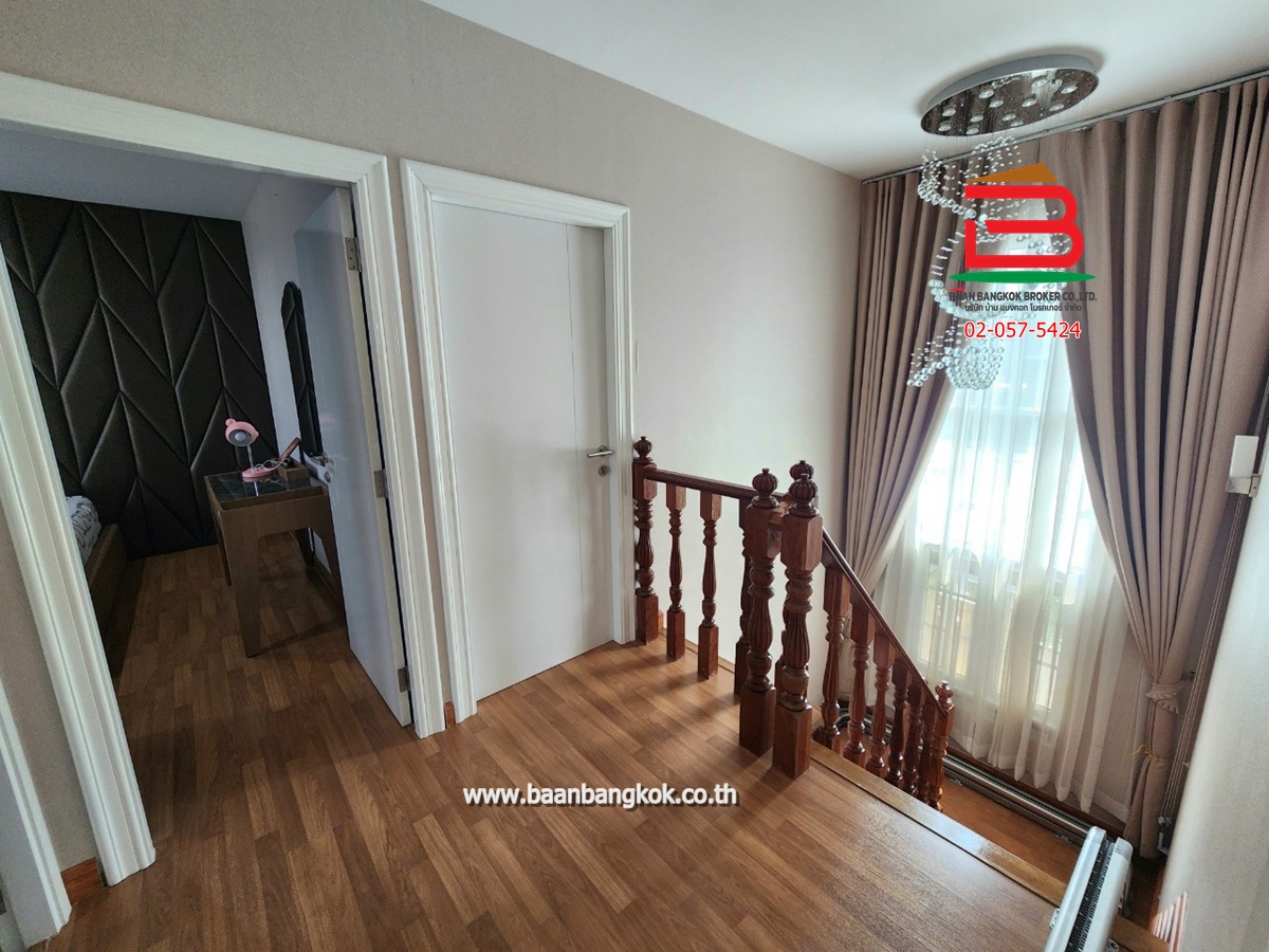การตกแต่ง: บ้านรีโนเวทใหม่ ต่อเติมเต็มพื้นที่ ประตูบ้านทำจากไม้สัก และพื้นที่ข้างบ้านปูกระเบื้องเต็มพื้นที่ และทำตะแกรงเหล็ก ภายในพื้นล่างปูด้วยกระเบื้องแกรนิต พื้นบนปูด้วยลามิเนต มีแอร์ 5 เครื่อง แถมเฟอร์นิเจอร์built-inทั้งหมด และชุดผ้าม่าน ส่วนโซนห้องครัวต่อเติม มีเคาน์เตอร์ครัว ปั้นน้ำ-แท็งค์น้ำ ประตูหน้าบ้าน(ระบบอัตโนมัติ) **วัสดุที่ใช้ เป็นวัสดุอย่างดีทุกชิ้น** และภายในโครงการมีสาธารณูปโภคครบครัน อาทิ รปภ.24ชั่วโมง, สโมสร, สระว่ายน้ำ, สนามเด็กเล่น