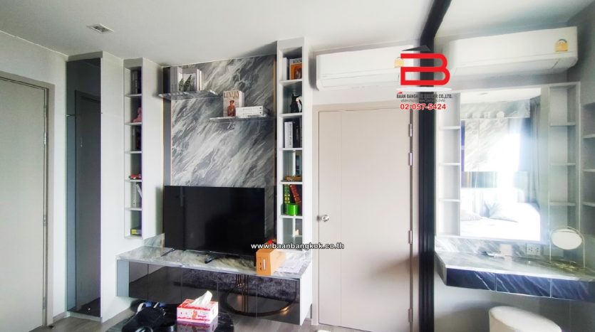 การตกแต่ง: ใช้วัสดุตกแต่ง built-inอย่างดี โถงรับแขกตกแต่งด้วยโซฟา และเฟอร์นิเจอร์อย่างดี ลงตัวเป็นสัดส่วน พร้อมแอร์ 2เครื่อง มีพื้นที่โซนครัว เป็นเคาน์เตอร์ Built-inอุปกรณ์ครบ มีตู้เย็น 2 ประตู, ไมโครเวฟ และอื่นๆ ระบบเข้า-ออกด้วย Key Card และDigital Door Lock และมีสิ่งอํานวยความสะดวกในโครงการ อาทิ สระว่ายน้ำ, ฟิศเนส, สวนหย่อม, ล็อบบี้, ระบบรักษาความปลอดภัย 24 ชม., สโมสร, สนามเด็กเล่น, ที่จอดรถภายในโครงการกว้างขวาง