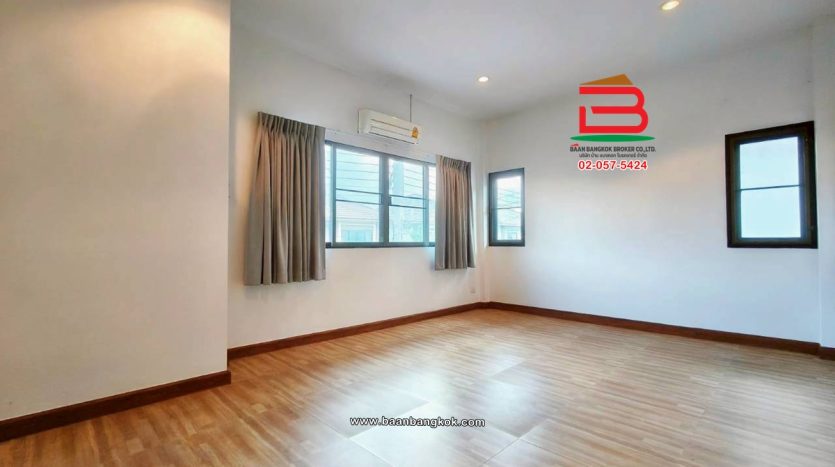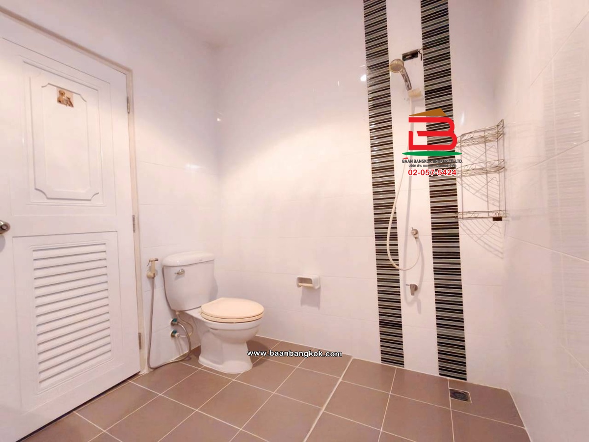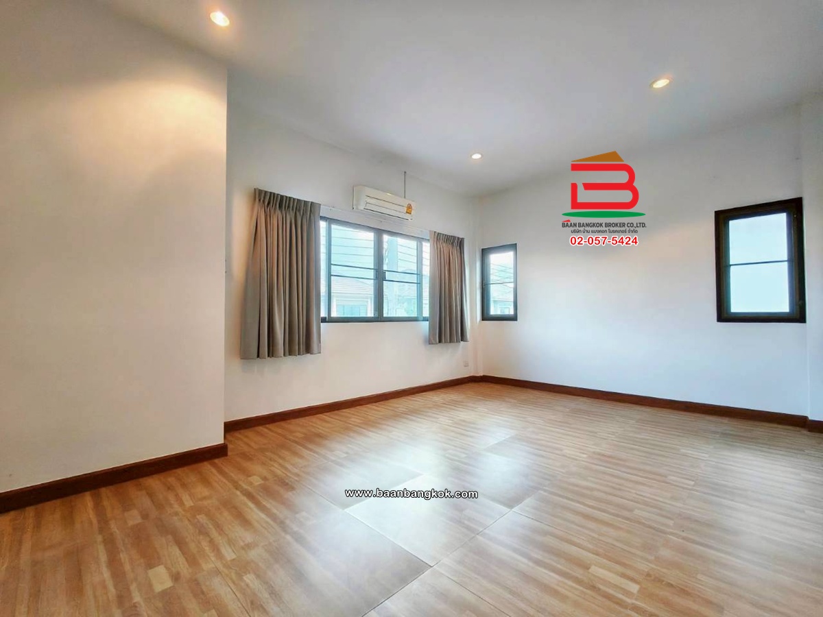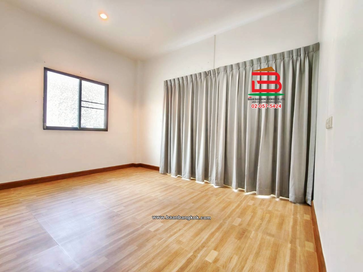 การตกแต่งถนนคอนกรีตหน้าบ้านกว้าง 12 เมตร ส่วนหน้าบ้านต่อเติม มุงหลังคาที่จอดรถ พร้อมปูกระเบื้องรอบบ้าน โซนภายในบ้าน พื้นชั้นล่างปูด้วยกระเบื้องแกรนิตโต้ พื้นด้านบนปูด้วยกระเบื้องลายไม้ ติดมุ้งลวด-เหล็กดัด พร้อมแอร์ 3 เครื่อง ห้องครัวbuilt-in มีปั้มน้ำ-แท็งค์น้ำ