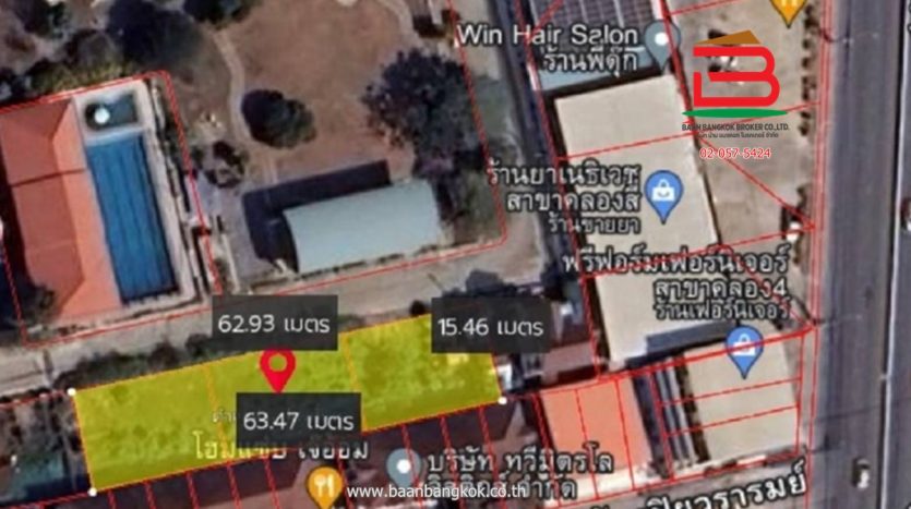 ประเภททรัพย์สิน : ที่ดินเปล่า ถมแล้ว แปลงสวย หน้ากว้าง 63.90 เมตร ลึก 15.50 เมตร อยู่หน้าโครงการ ใกล้สวนสาธารณะและสโมสร ทำเลดี