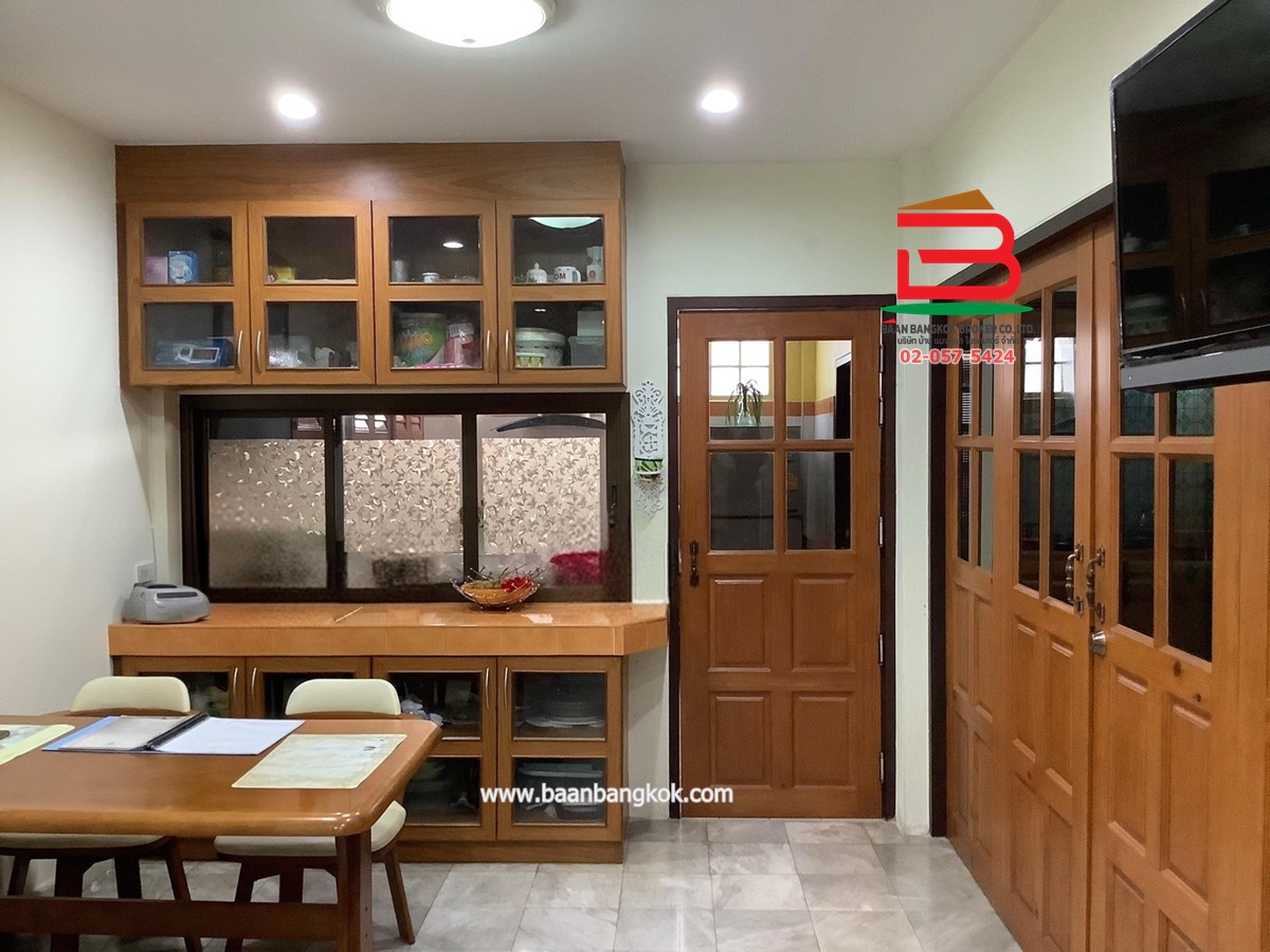 การตกแต่ง : บ้านสวย พร้อมอยู่ เฟอร์นิเจอร์บางส่วน *ชั้น 1 มีห้องโถงใหญ่สำหรับรับแขก นั่งเล่น ดู TV ถัดเข้ามาหน้าห้องครัวทำเป็นที่รับประทานอาหาร หรือ เป็นมุมทำงานได้ ห้องครัวบิวท์อินแล้ว มีห้องซักล้าง มีห้อง 1 ห้องไว้สำหรับผู้สูงอายุหรือทำเป็นห้องแม่บ้าน 1 ห้องน้ำ แยกโซนเปียก-แห้ง พื้นปูด้วยแกรนิตโต้ลายหินอ่อน ติดมุ้งลวด+เหล็กดัด แอร์ตัวใหญ่ 1 ตัว และตัวเล็ก 1 ตัว บันไดเป็นไม้มะค่าเนื้อแข็ง *ชั้น 2 มี 3 ห้องนอน พื้นเป็นพื้นไม้เนื้อแข็งปาร์เก้ มีแอร์ 3 ตัว ห้องนอนใหญ่มีแอร์ฝัง ห้องน้ำในตัว เฟอร์ฯบิวท์อินแล้ว ห้องน้ำปูกระเบื้อง สุขภัณฑ์ American Standard แยกเปียก-แห้ง