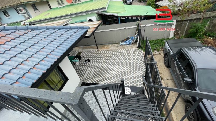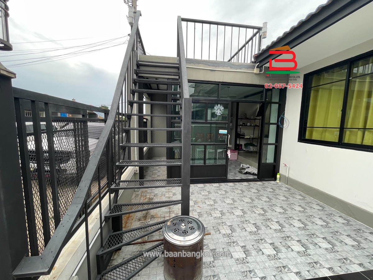 การตกแต่ง: รีโนเวท สไตล์โมเดิร์น ภายในทาสีขาวสะอาดตา ฝ้าเพดานฝ้าเรียบ พื้นปูกระเบื้องเซรามิค หลังคาโรงจอดรถเป็น Metal Sheet ห้องโถงทำหน้าต่างประตูอะลูมิเนียกระจกเขียวใส มีปั้มน้ำ+แท็งค์น้ำ แอร์ 1 เครื่อง