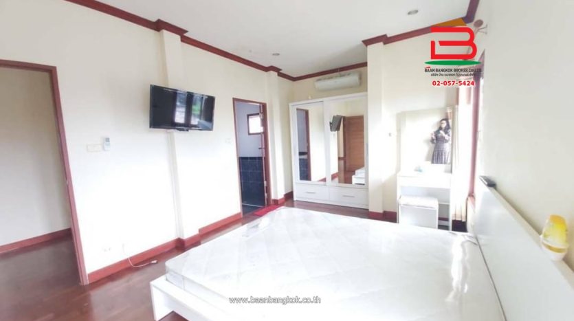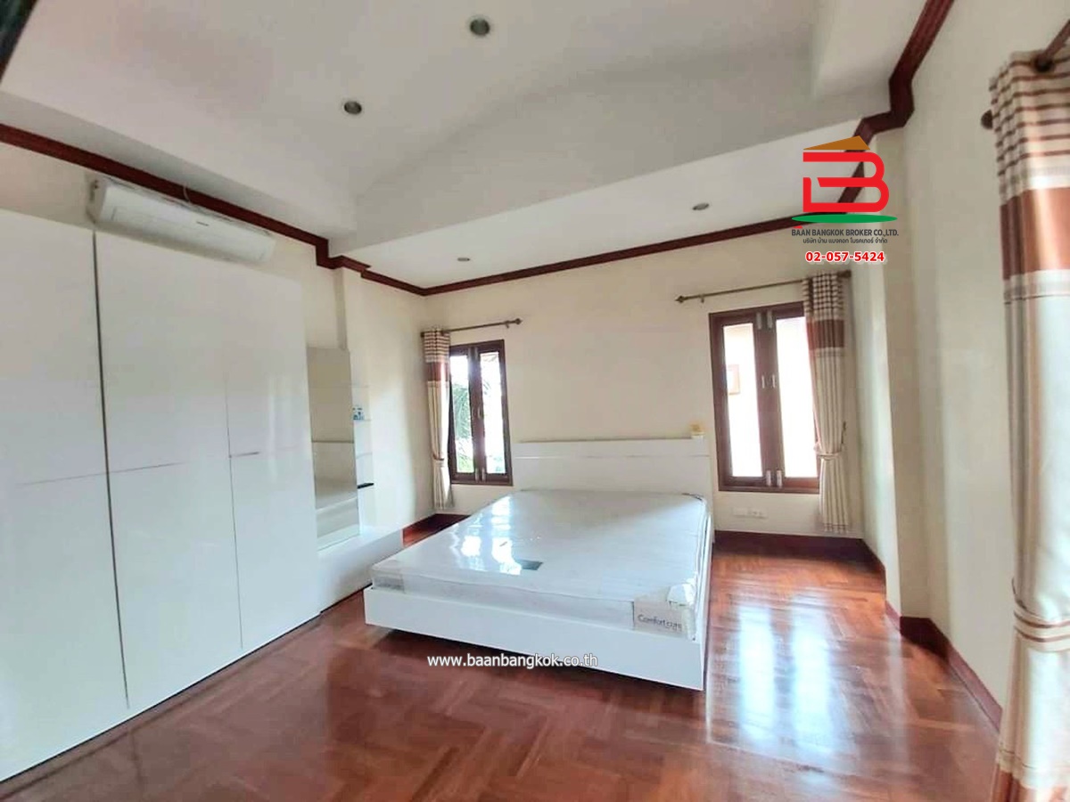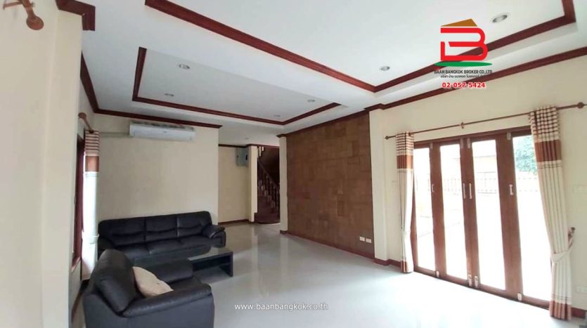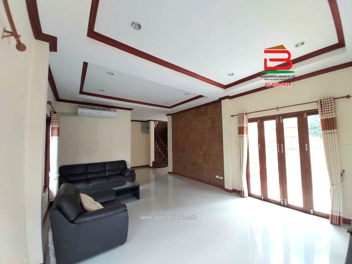 การตกแต่ง: ประตูหน้าบ้านเป็นระบบไฟฟ้า ในบ้านมีที่จอดรถมุงหลังคาเรียบร้อยพร้อมปูกระเบื้อง รอบบ้านปลูกต้นไม้ใหญ่ โซนภายในบ้าน ด้านล่างปูด้วยกระเบื้องหินคัด ด้านบนปูพื้นด้วยปาร์เก้ ห้องนอนติดผ้าม่าน มีแอร์ทุกห้อง พร้อมตู้เสื้อผ้า built in และห้องครัวบิวอิน แอร์ 5 เครื่อง