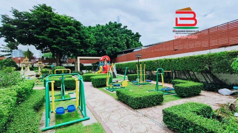 การตกแต่ง: พื้นล่างปูแกรนิตโต้ พื้นบนปูลามิเนต ติดไฟดาวน์ไลท์ ติดมุ้งลวด+เหล็กดัด มีปั้มน้ำ+แท็งค์น้ำ แอร์ 3 เครื่อง มีสิ่งอำนวยความสะดวก อาทิเช่น รปภ. 24 ชม., CCTV, สนามเด็กเล่น, สระว่ายน้ำ