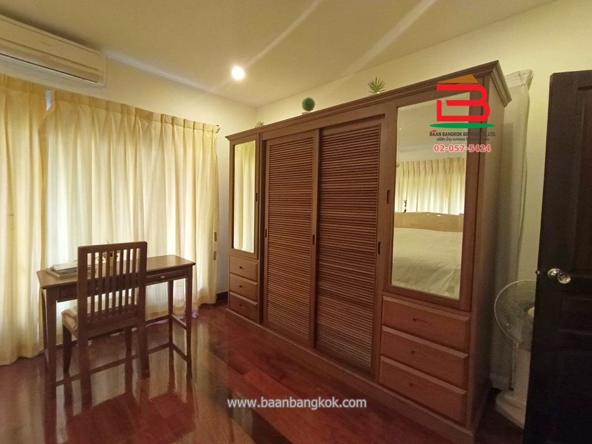 การตกแต่ง: พื้นล่างปูแกรนิตโต้ พื้นบนปูปาร์เก้ พร้อมเฟอร์นิเจอร์ครบ ติดมุ้งลวด-เหล็กดัด มีปั้มน้ำ-แท็งค์น้ำ แอร์ 4 เครื่อง มีสิ่งอำนวยความสะดวก อาทิ เช่น รปภ.24 ชม., CCTV, สนามเด็กเล่น, สระว่ายน้ำ