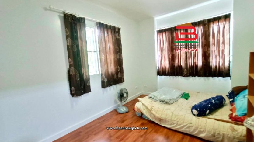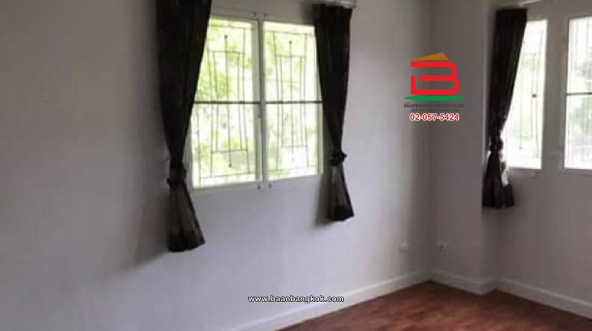 การตกแต่ง: พื้นบ้านชั้นปูด้วยลามิเนต พื้นบ้านชั้นล่างปูด้วยกระเบื้องแกรนิตโต้ Build-in ห้องครัว ติดเหล็กดัด-มุ้งลวด พร้อมผ้าม่านทั้งหลัง แอร์ 3 เครื่องมีเเท็งค์น้ำ