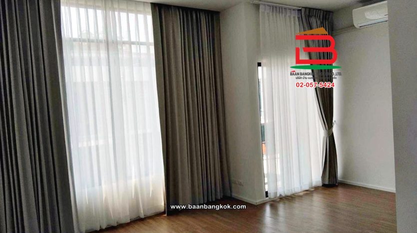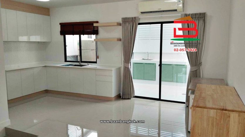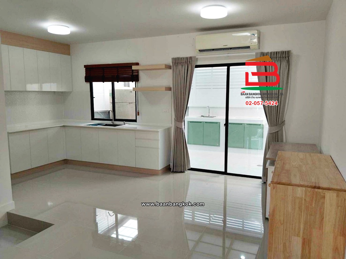 การตกแต่ง: เฟอร์นิเจอร์บางส่วน พื้นชั้นล่างปูแกรนิตโต้ พื้นชั้นบนปูลามิเนต ติดผ้าม่านทุกห้อง บิวท์อินครัวในบ้านและหลังบ้าน หลังบ้านต่อเติมหลังคาและมีระแนงบังตา ติดเหล็กดัด มีปั้มน้ำ+แท็งค์น้ำ แอร์ 3 เครื่อง