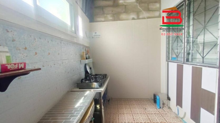 การตกแต่ง: เฟอร์นิเจอร์บางส่วนบิวท์อิน พื้นล่างปูกระเบื้อง พื้นบนปูปาร์เก้ ตกแต่งห้องครัวเพิ่มเติม ภายในติดมุ้งลวด+เหล็กดัด แอร์ 1 เครื่อง ที่จอดรถปูพื้นกระเบื้อง มีสิ่งอำนวยความสะดวก อาทิ รปภ.24 ชั่วโมง