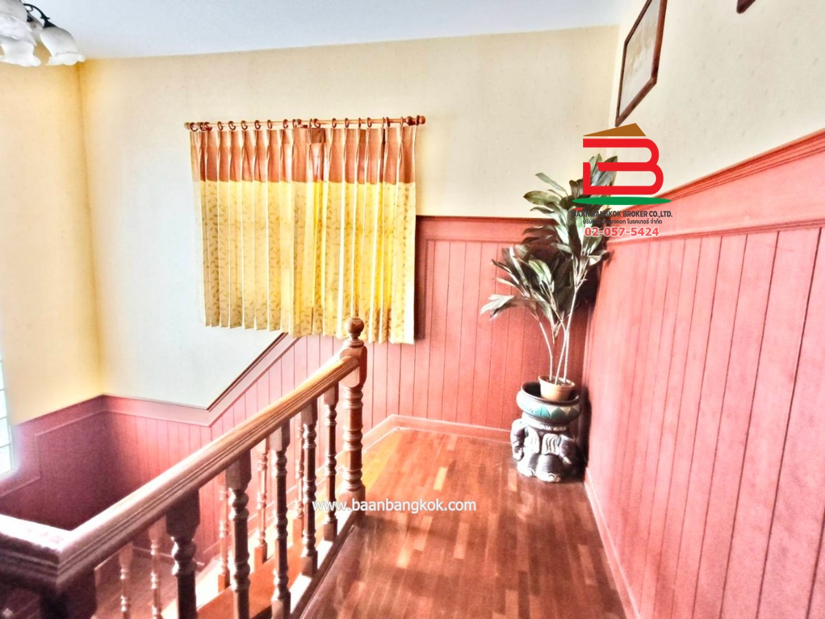 การตกแต่ง : สภาพบ้านแข็งแรงไม่ทรุด พื้นชั้นล่างปูด้วยกระเบื้องแกรนิตโต้ พื้นชั้นบนปูปาร์เก้ ภายในติดมุ้งลวด+เหล็กดัด มีปั้มน้ำ+แท็งค์น้ำ พร้อมแอร์ 4 เครื่อง มีสิ่งอำนวยความสะดวกอาทิ เช่น รปภ.24 ชม., มีสวนสาธารณะ, สนามเด็กเล่น