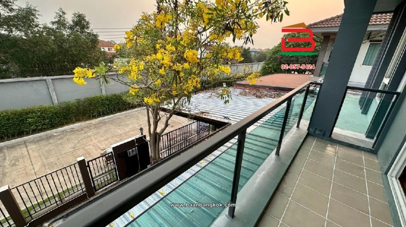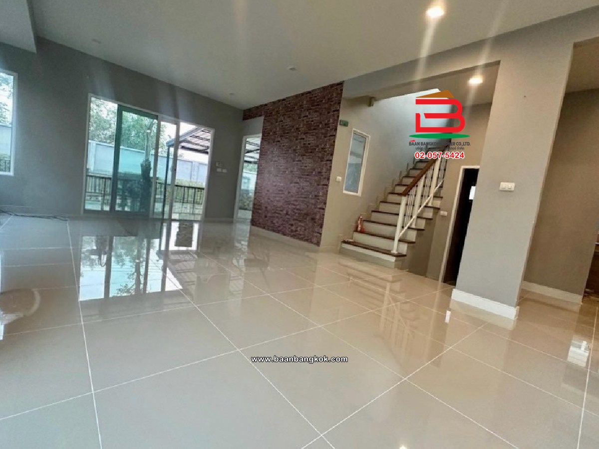 การตกแต่ง: บิ้วอิน และต่อเติมโรงจอดรถและห้องครัว ชั้นล่างปูด้วยกระเบื้องแกรนิโต้ ชั้นบนปูด้วยไม้ปาร์เก้ ภายในบ้านติดมุ้งลวด+เหล็กดัด+ปั๊มน้ำ+แท็งคน้ำ พร้อมแอร์ 3 เครื่อง ในโครงการมีสิ่งอำนวยความสะดวก อาทิ ระบบรักษาความปลอดภัย 24 ชม., สนามเด็กเล็ก, สระว่ายน้ำ และ CCTV