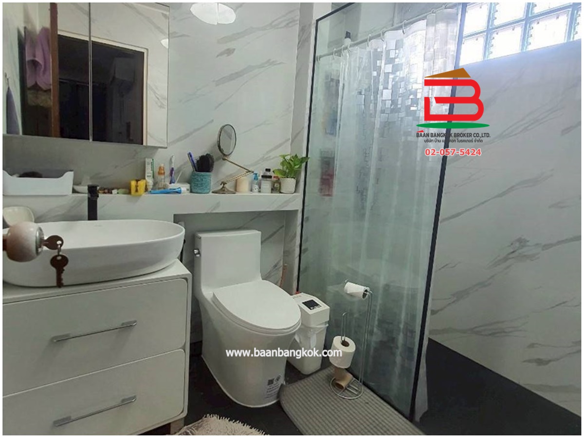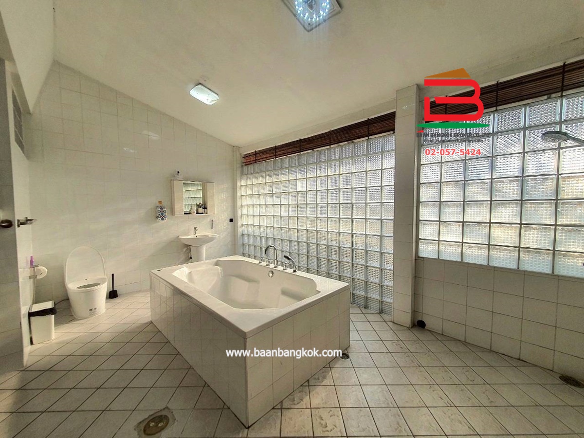 การตกแต่ง : เฟอร์นิเจอร์บางส่วน ครัวบิวท์อินกว้างขวางมาก มีห้องน้ำขนาดกว้างพร้อมอ่างอาบน้ำ แอร์ 11 เครื่อง มีปั้มน้ำ+แท็งค์น้ำ มีบริเวณสวน ต้นไม้ใหญ่ ทำให้บริเวณบ้านร่มรื่น เย็นสบาย สามารถปลูกสร้างบ้านเพิ่มได้ สิ่งอำนวยความสะดวก อาทิเช่น รปภ.24 ชม., CCTV, สนามเด็กเล่น