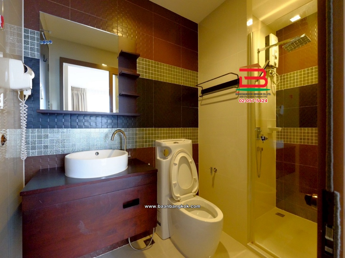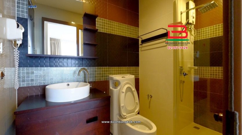 การตกแต่ง : พื้นปูด้วยลามิเนต เฟอร์นิเจอร์และเครื่องใช้ไฟฟ้าครบ มีโซฟา ตู้ โต๊ะ เตียง ทีวี ไมโครเวฟ เตาไฟฟ้า เครื่องซักผ้า เครื่องทำน้ำอุ่น 1 ตัว แอร์ 3 ตัว
