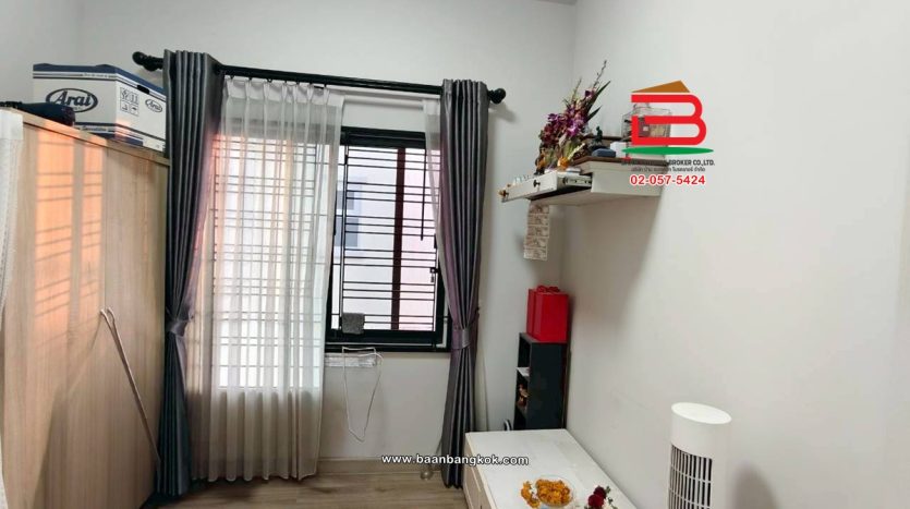 การตกแต่งบ้านพร้อมอยู่ ชั้นล่างปูกระเบื้องแกรนิตโต้ ชั้นบนปูพื้นด้วยลามิเนต ตกแต่งพร้อมอยู่ทำหลังคาจอดรถด้านหน้า และด้านข้างบ้านห้องครัวปรับปรุงบิ้วอินใหม่ ห้องชั้นล่างติดประตูกั้นแอร์อย่างดี ปรับปรุงตกแต่งใหม่ทั้งหลังพร้อมเข้าอยู่ได้เลย