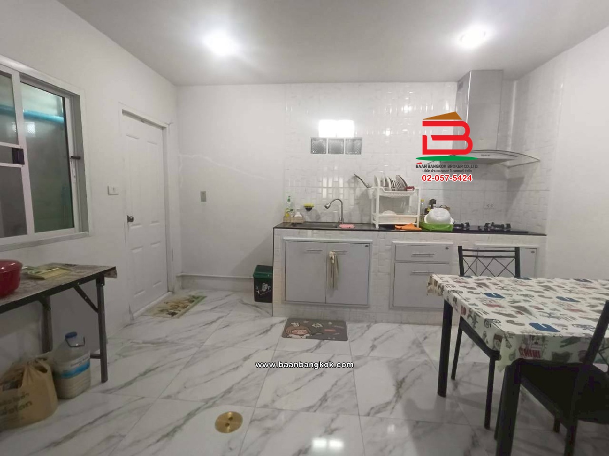 การตกแต่ง: ขายพร้อมเฟอร์นิเจอร์บางส่วน พื้นชั้น 1 ปูด้วยกระเบื้องแกรนิตโต้ (สีขาวขนาด 60X60 ซม.) ส่วนพื้นชั้น 2 ปูด้วยลามิเนตทั้งหมด มีต่อเติมทำห้องครัวใหม่ built-in ปูพื้นหัองครัวด้วยแกรนิตโต้ลายหินอ่อน พร้อมติดตั้งเครื่องดูดควัน เตาแก๊ส เล่นระดับระหว่างพื้นห้องซักล้าง ส่วนหน้าบ้านต่อเติมหลังคาทำโรงจอดรถ บรรยากาศเย็นสบายเหมาะเป็นที่พักอาศัย,ค้าขาย ,ทำร้านกาแฟ&เบอเกอรี่ หรือทำออฟฟิศ
