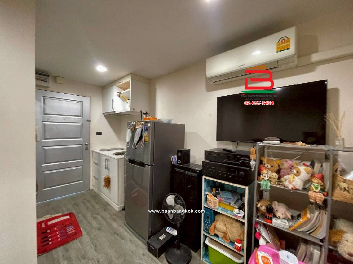 ประเภททรัพย์สินคอนโดมิเนียม สูง 5 ชั้น อยู่ชั้นที่ 4 มี 1 ห้องนอน 1 ห้องน้ำ 1 ห้องนั่งเล่น พร้อมเค้าเตอร์ครัวขนาดพอดี ทีวี, ตู้เย็น, โซฟา และแอร์ 2 เครื่อง ตู้เตียงบิ้วอินของโครงการ หิ้วกระเป๋าเข้าอยู่ได้เลย