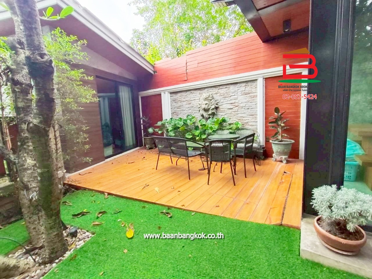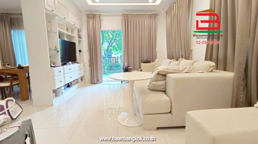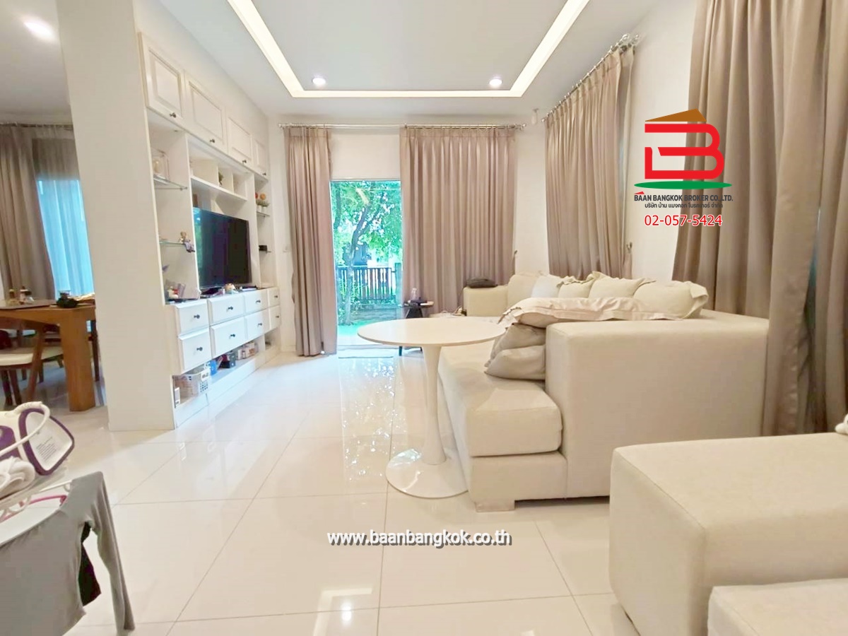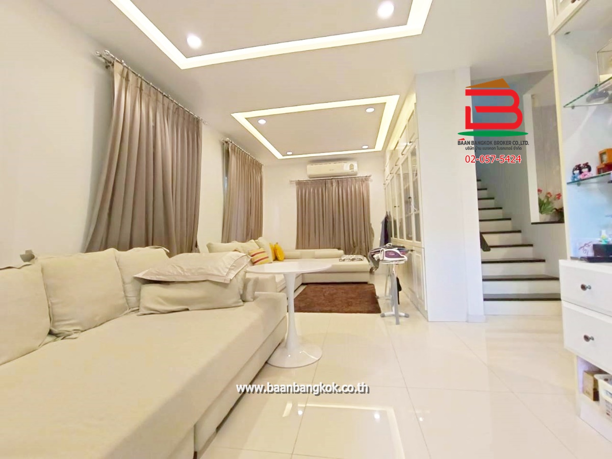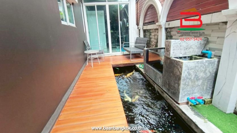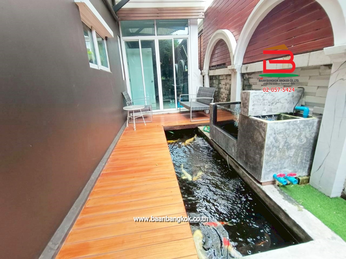 การตกแต่ง: พื้นชั้นล่างปูแกรนิตโต้ ชั้นบนปูลามิเนต ห้องโถงกว้าง ห้องครัวบิวท์อิน มีพื้นที่ซักล้าง ส่วนด้านข้างบ้านทางขวามือแยกจากตัวบ้านเป็นห้องคาราโอเกะ สามารถจุคนได้ 20 คน ห้องฟิตเนส มีสระเลี้ยงปลาคาร์ฟไว้นั่งจิบกาแฟยามเช้า บรรยากาศดี ภายในติดเหล็กดัด+มุ้งลวด+ปั้มน้ำ+แท็งค์น้ำ+แอร์ ในโครงการมีสิ่งอำนวยความสะดวก อาทิ เช่น สนามเด็กเล่น, สระว่ายน้ำ, ฟิตเนส, สโมสร, CCTV, รปภ.