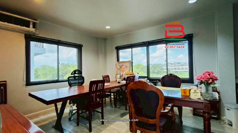 ประเภททรัพย์สินโฮมออฟฟิศ 3.5 ชั้น เป็นหลังริม ต่อเติม ประกอบไปด้วย 3 ห้องอเนกประสงค์ 2 ห้องออฟฟิศสำนักงานขนาดใหญ่ 1 ห้องประชุมใหญ่ ห้องทานข้าวห้องครัว ห้องน้ำ 5 ห้อง แอร์ 12 เครื่อง เดินทางเข้าออกสะดวก โครงการติดถนนร่มเกล้า (เป็นหลังที่ 3 จากหน้าโครงการ) การออกแบบเน้นความโล่งโปร่ง เพดานสูง หน้ากว้าง 15 เมตร ที่จอดรถหน้าอาคาร 2 คัน