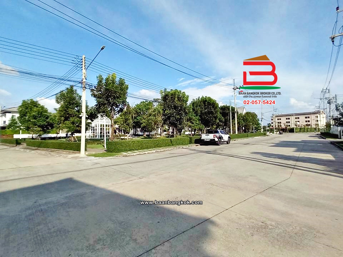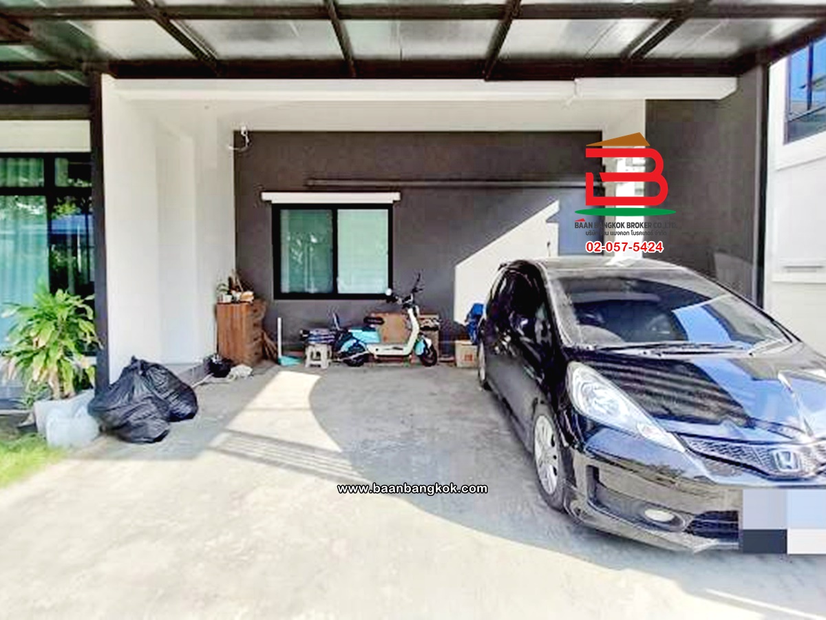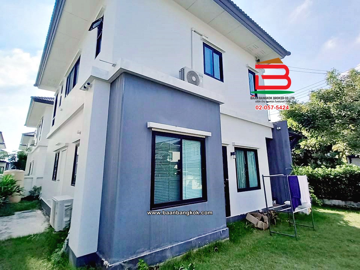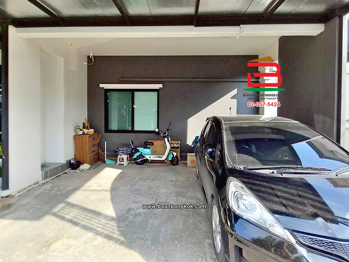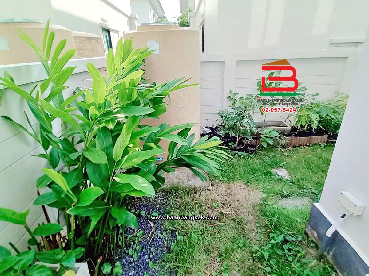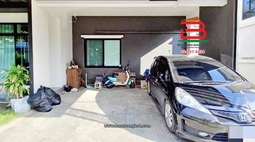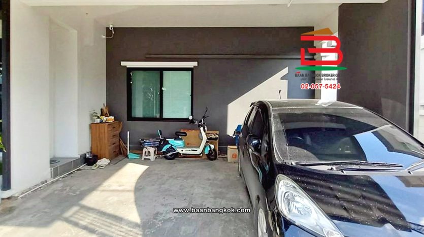 การตกแต่ง: พื้นห้องชั้นล่างปูด้วยกระเบื้อง ส่วนพื้นห้องชั้นบนจะเป็นพื้นห้องลามิเนต ฝ้าเพดานจะเป็นฝ้าเรียบ โซนหน้าบ้านต่อเติมโรงจอดรถให้เรียบร้อย ส่วนประตูรั้วหน้าบ้านจะเป็นระบบ เปิด-ปิดอัตโนมัติ ด้วยรีโมท มีพื้นที่โดยรอบข้างบ้าน