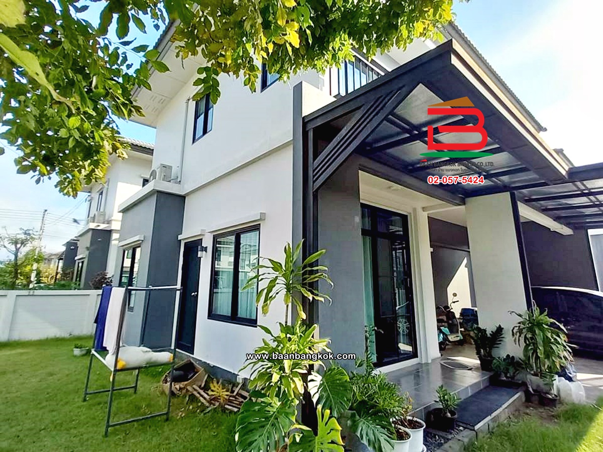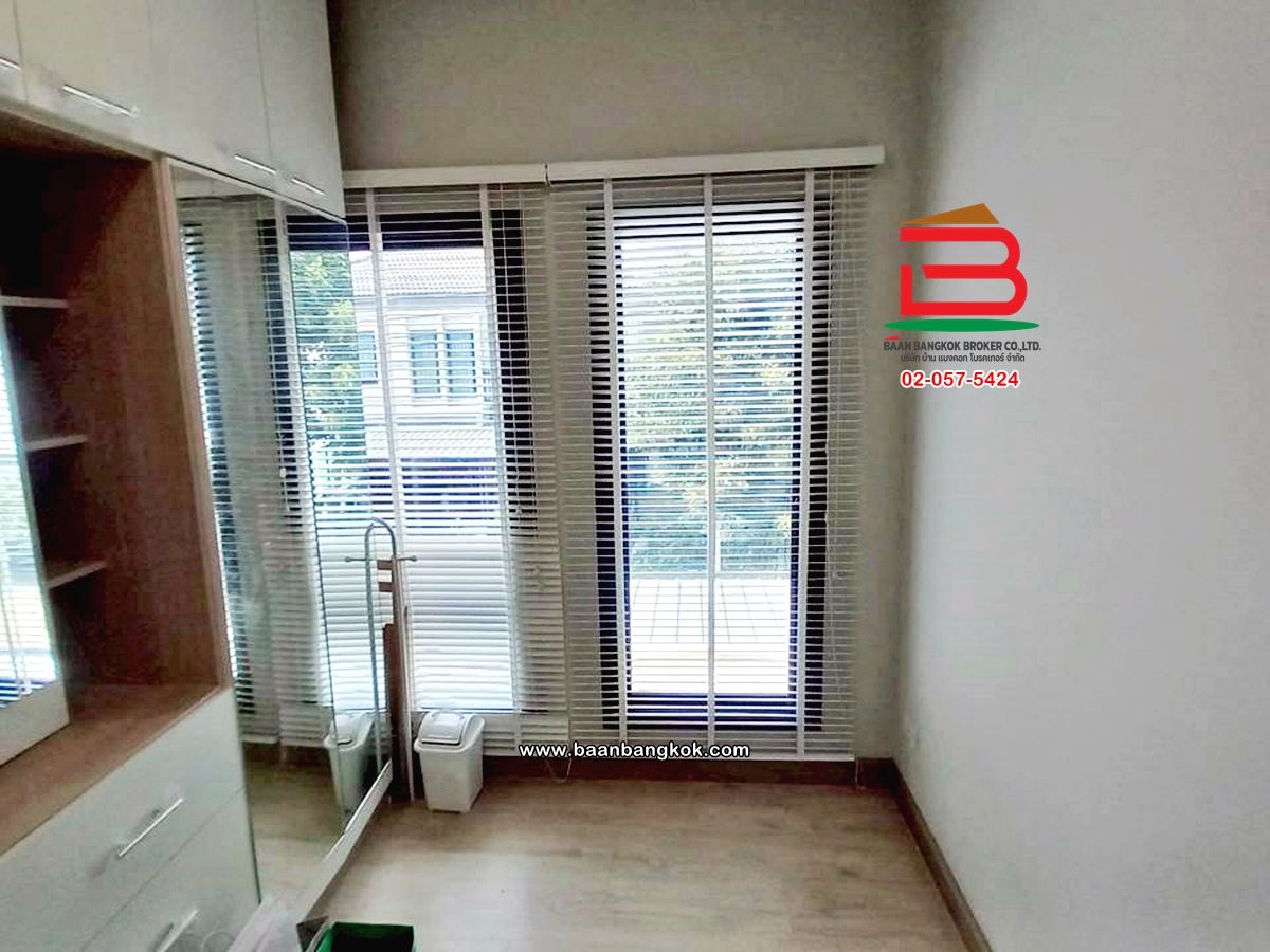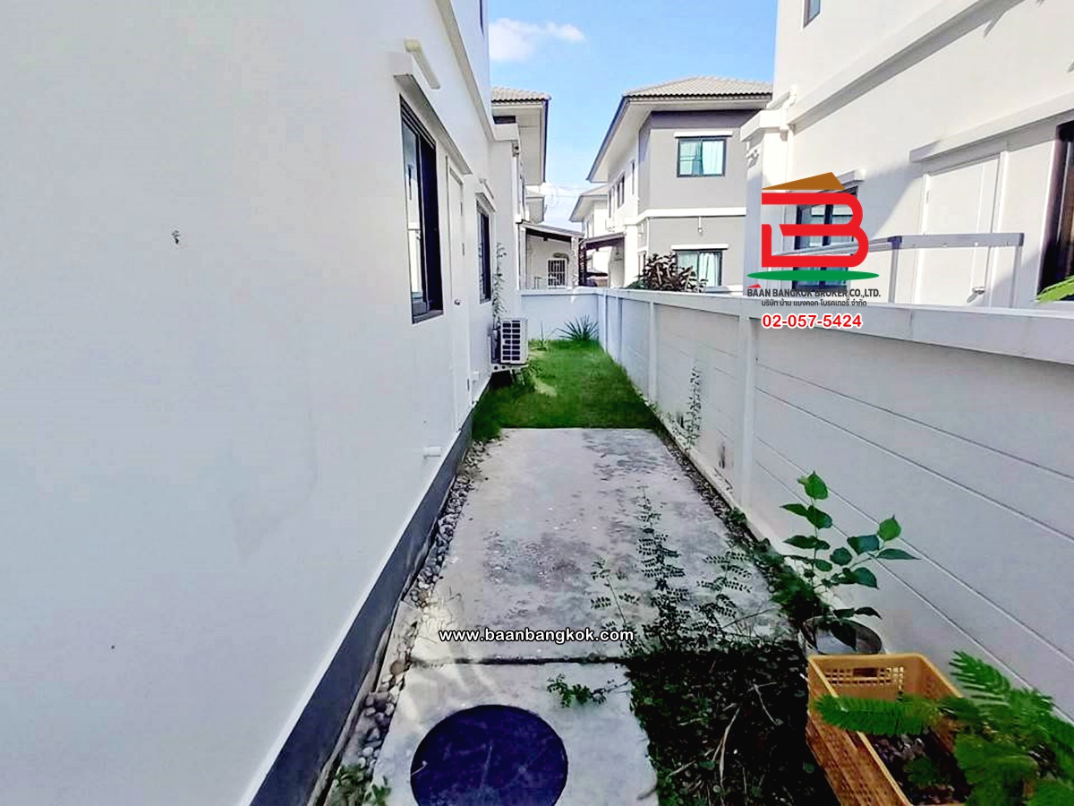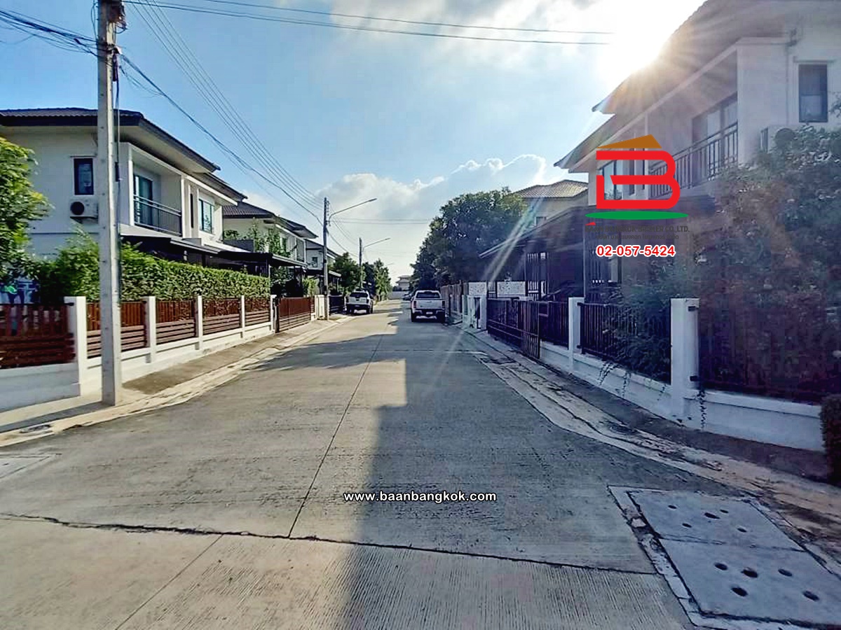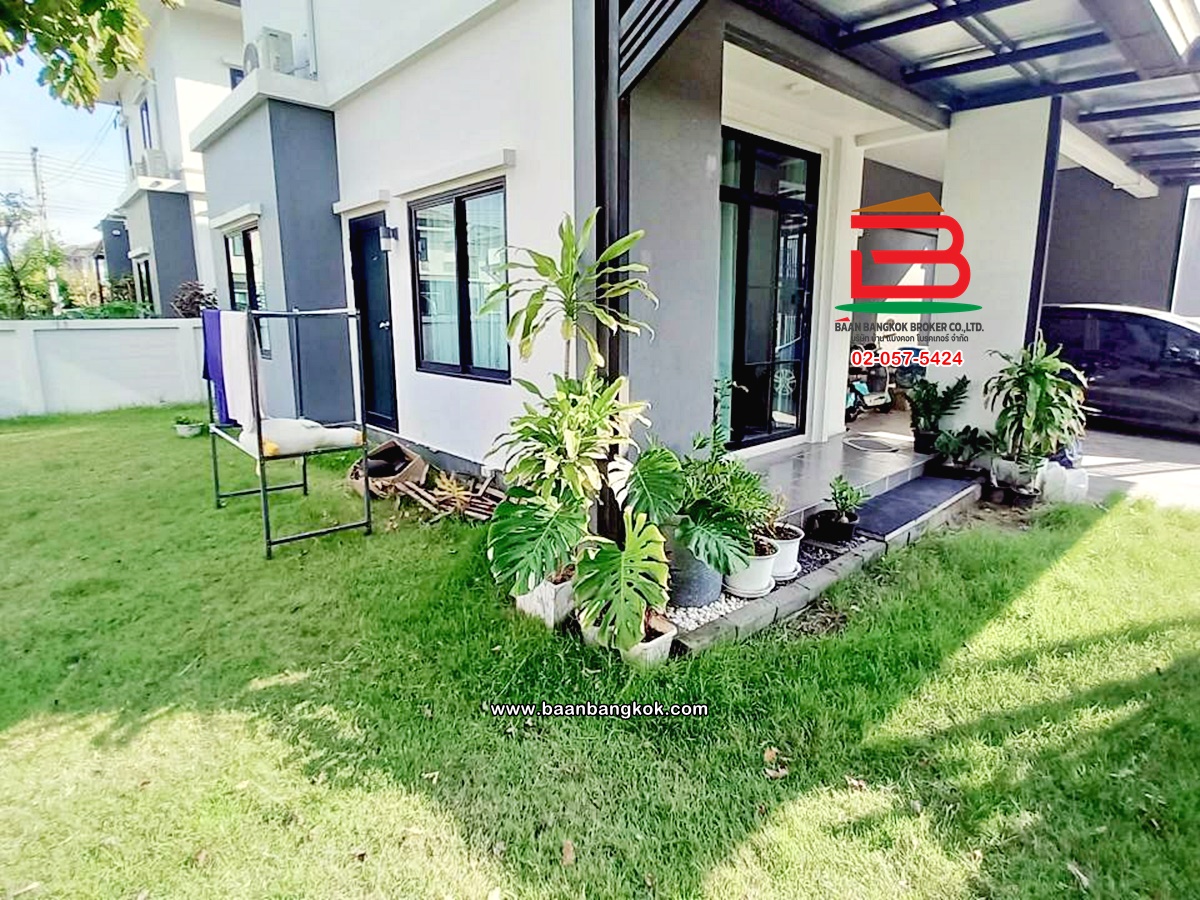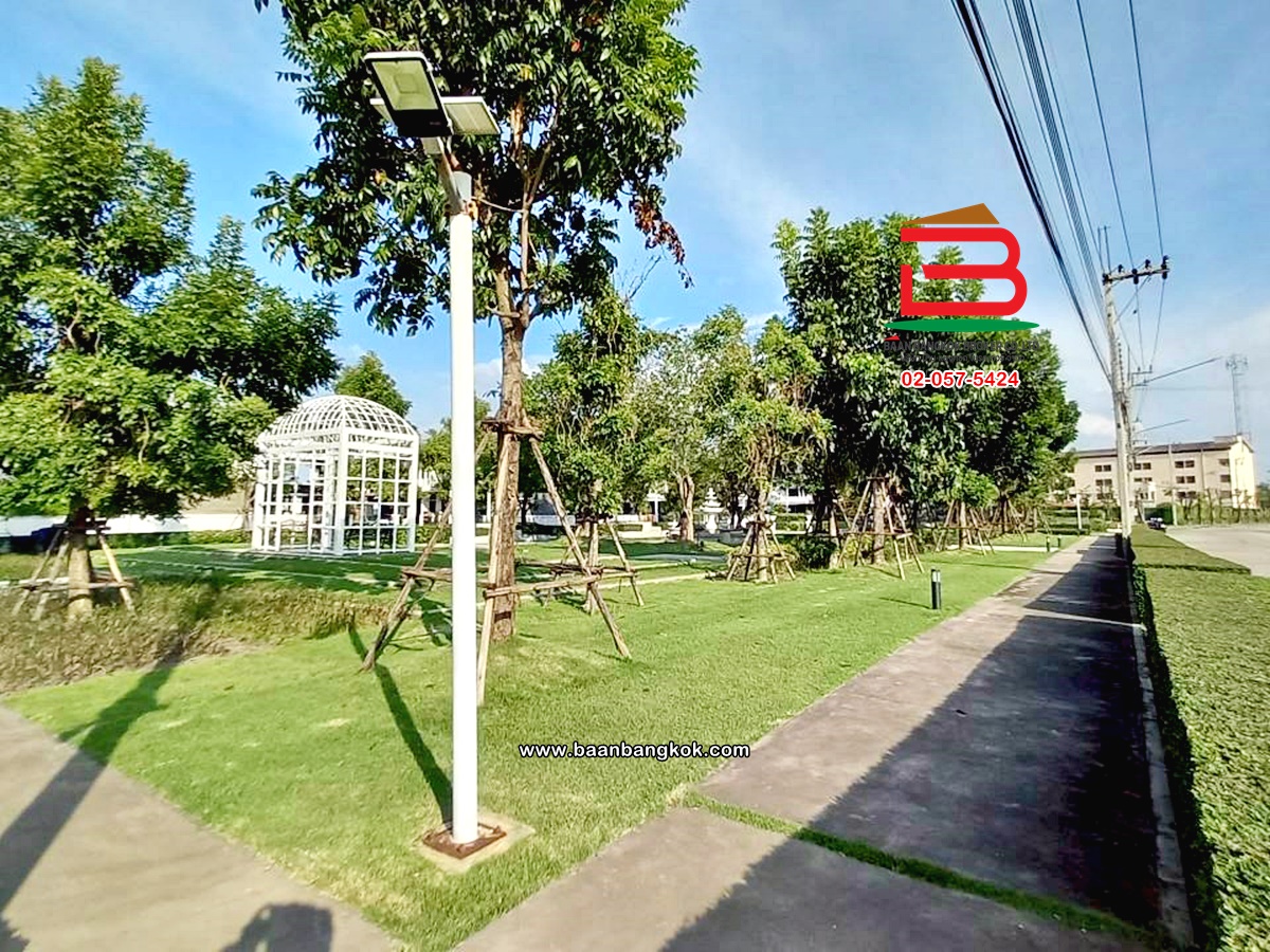 การตกแต่ง: พื้นห้องชั้นล่างปูด้วยกระเบื้อง ส่วนพื้นห้องชั้นบนจะเป็นพื้นห้องลามิเนต ฝ้าเพดานจะเป็นฝ้าเรียบ โซนหน้าบ้านต่อเติมโรงจอดรถให้เรียบร้อย ส่วนประตูรั้วหน้าบ้านจะเป็นระบบ เปิด-ปิดอัตโนมัติ ด้วยรีโมท มีพื้นที่โดยรอบข้างบ้าน