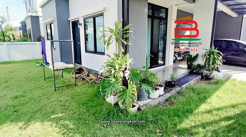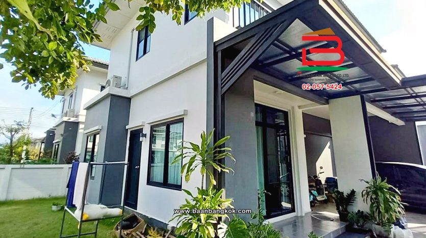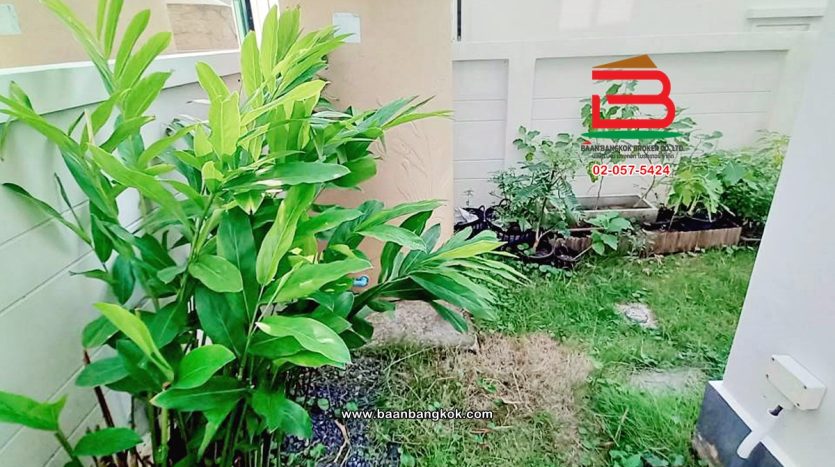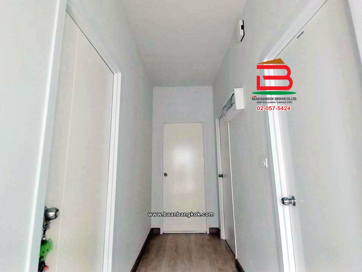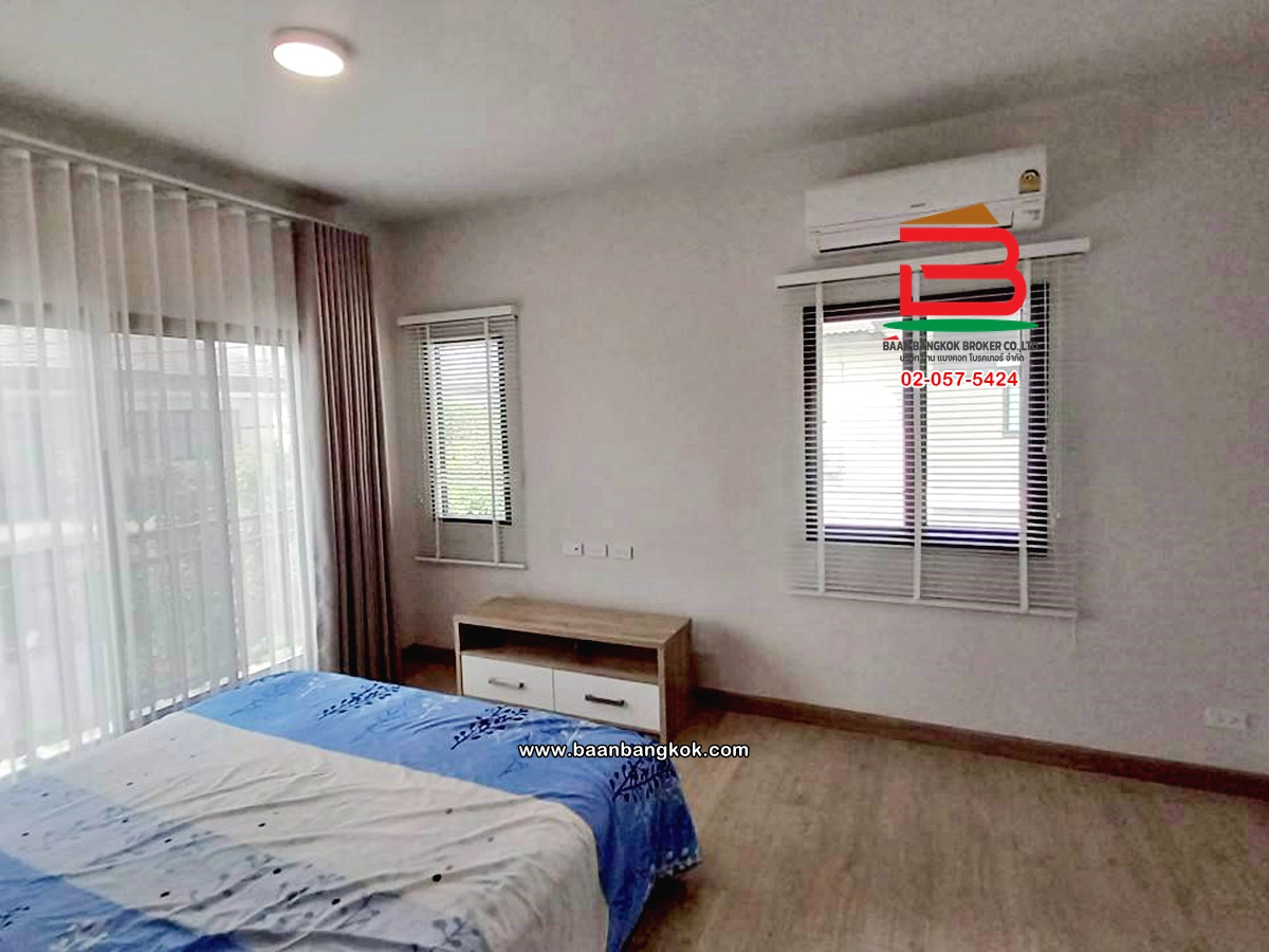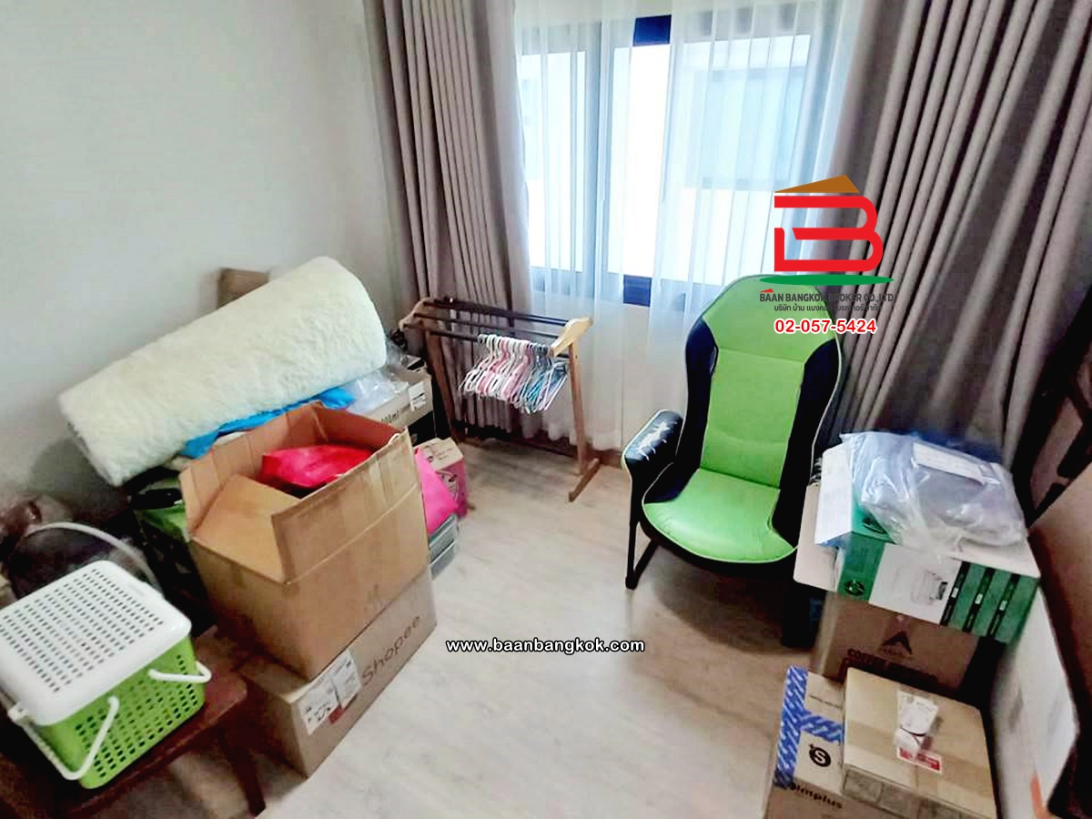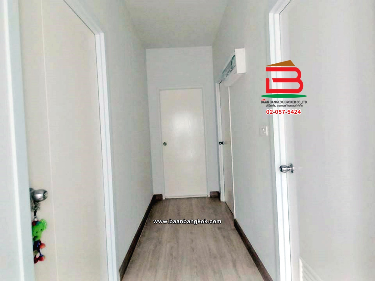 การตกแต่ง: พื้นห้องชั้นล่างปูด้วยกระเบื้อง ส่วนพื้นห้องชั้นบนจะเป็นพื้นห้องลามิเนต ฝ้าเพดานจะเป็นฝ้าเรียบ โซนหน้าบ้านต่อเติมโรงจอดรถให้เรียบร้อย ส่วนประตูรั้วหน้าบ้านจะเป็นระบบ เปิด-ปิดอัตโนมัติ ด้วยรีโมท มีพื้นที่โดยรอบข้างบ้าน