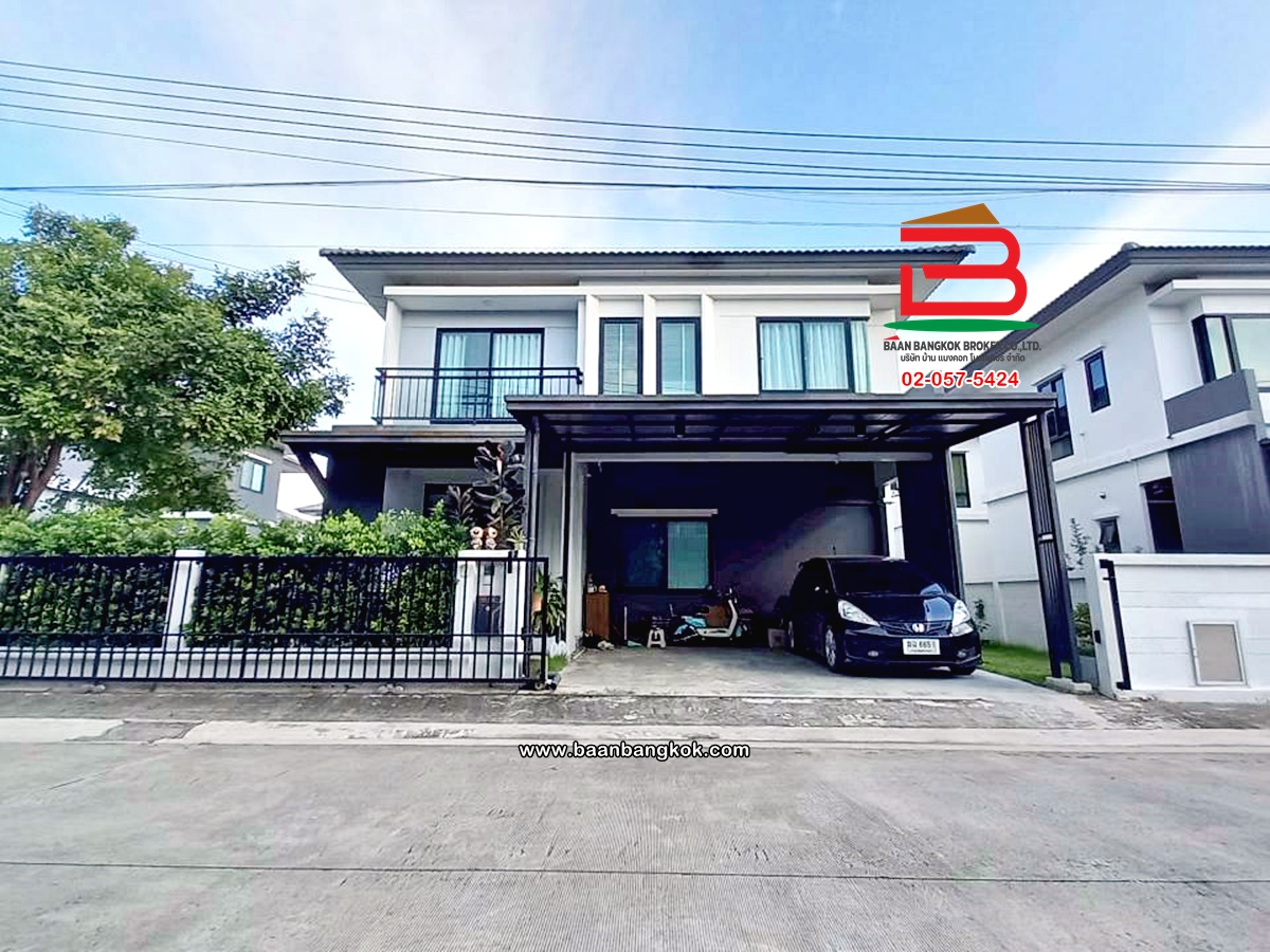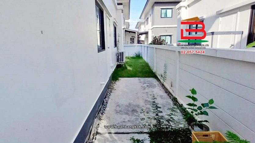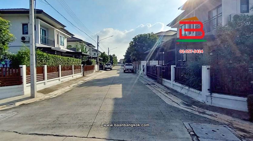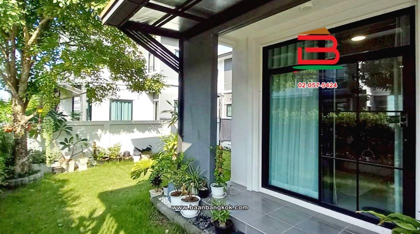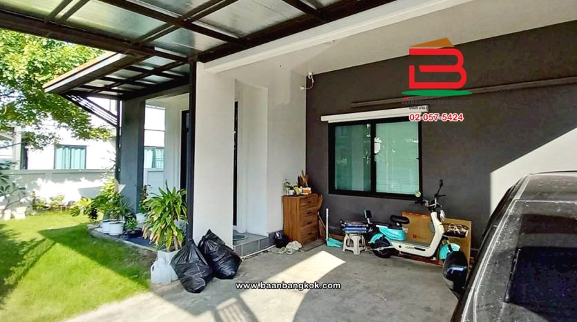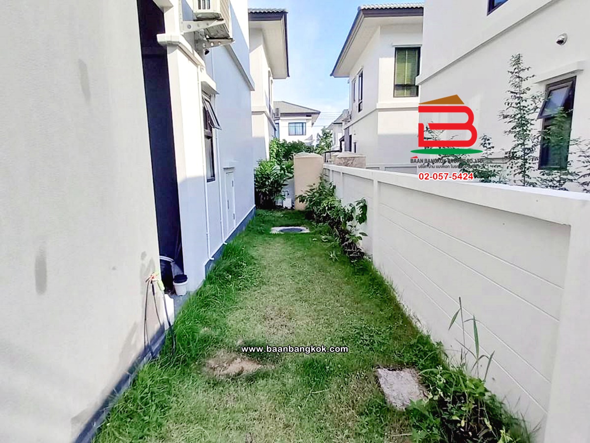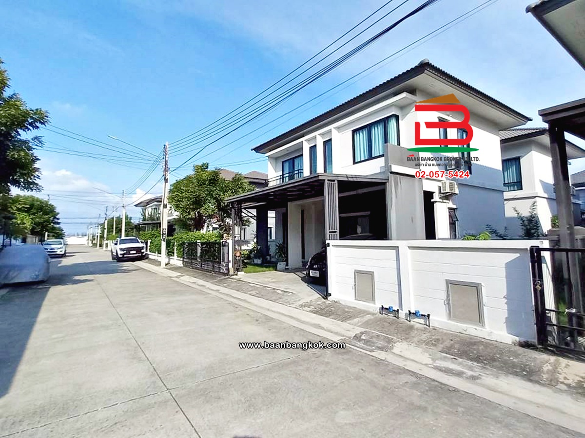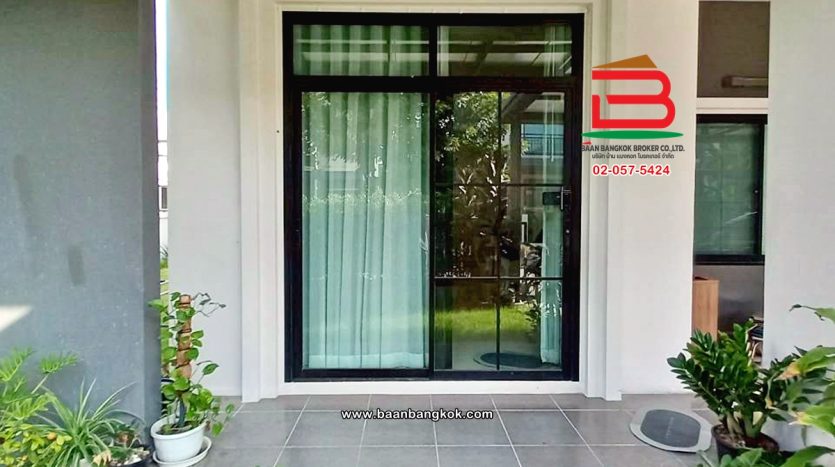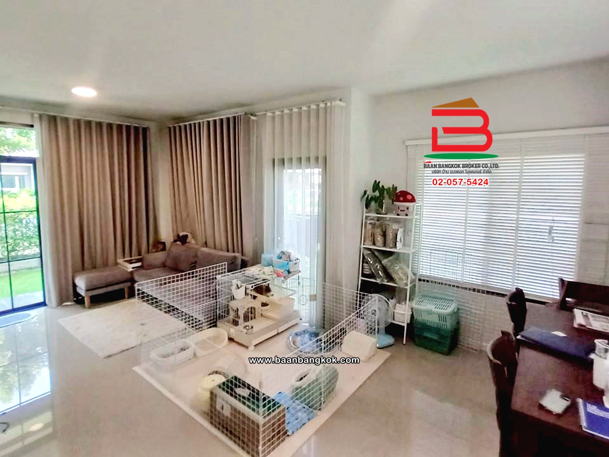 การตกแต่ง: พื้นห้องชั้นล่างปูด้วยกระเบื้อง ส่วนพื้นห้องชั้นบนจะเป็นพื้นห้องลามิเนต ฝ้าเพดานจะเป็นฝ้าเรียบ โซนหน้าบ้านต่อเติมโรงจอดรถให้เรียบร้อย ส่วนประตูรั้วหน้าบ้านจะเป็นระบบ เปิด-ปิดอัตโนมัติ ด้วยรีโมท มีพื้นที่โดยรอบข้างบ้าน