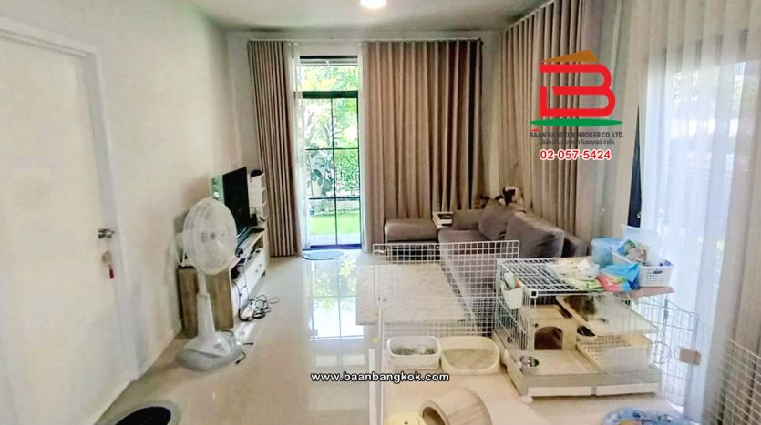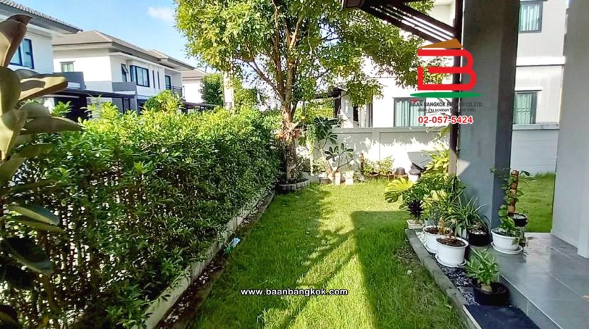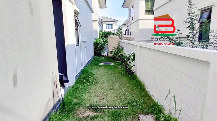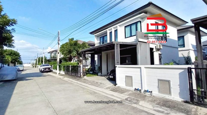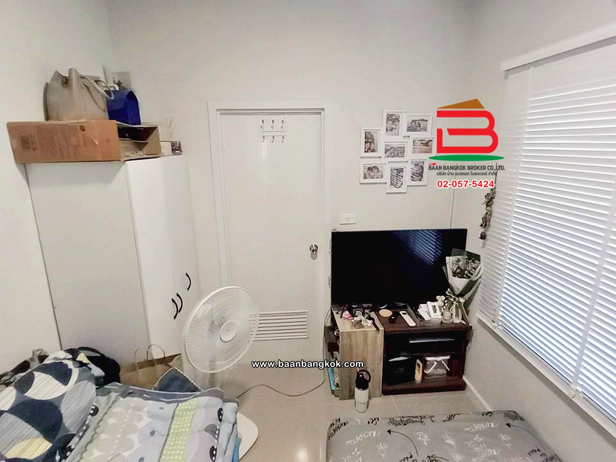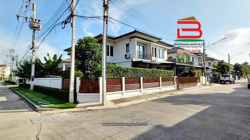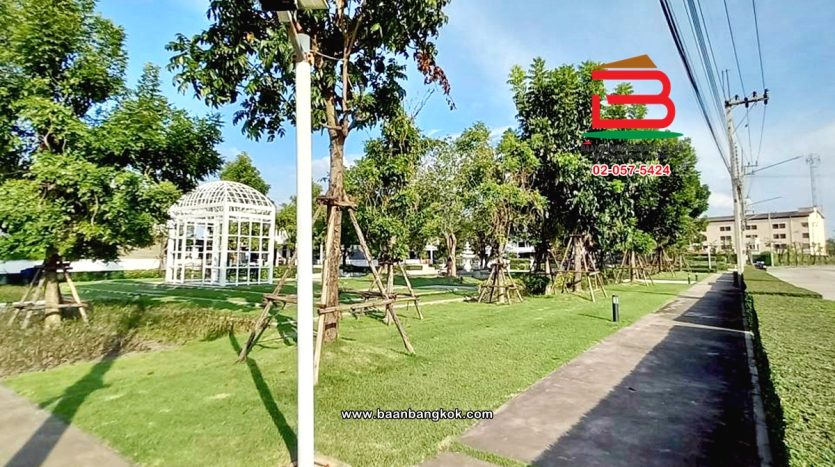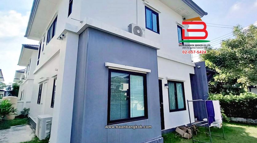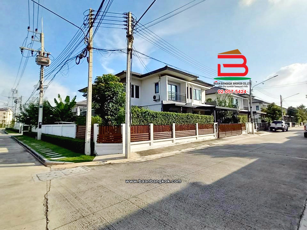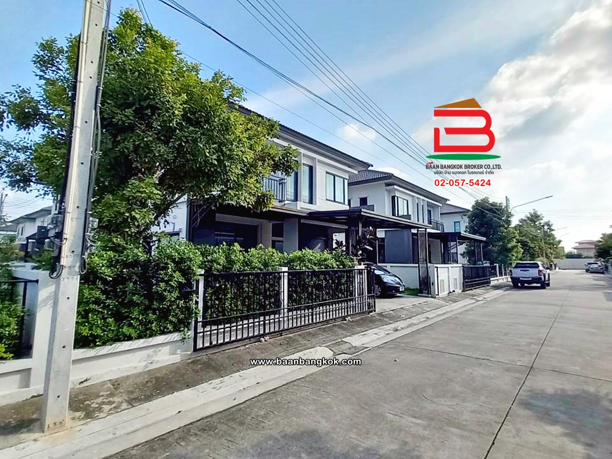การตกแต่ง: พื้นห้องชั้นล่างปูด้วยกระเบื้อง ส่วนพื้นห้องชั้นบนจะเป็นพื้นห้องลามิเนต ฝ้าเพดานจะเป็นฝ้าเรียบ โซนหน้าบ้านต่อเติมโรงจอดรถให้เรียบร้อย ส่วนประตูรั้วหน้าบ้านจะเป็นระบบ เปิด-ปิดอัตโนมัติ ด้วยรีโมท มีพื้นที่โดยรอบข้างบ้าน
