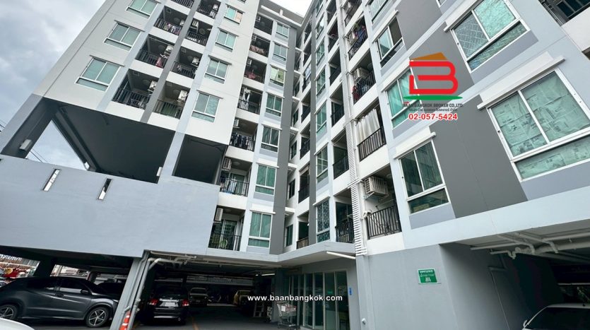 ประเภททรัพย์สินคอนโดมิเนียม สูง 8 ชั้น อยู่ชั้นที่ 8 มี 1 ห้องนอน 1 ห้องน้ำ 1 ห้องครัวแยก มีระเบียง 1 ที่จอดรถ อาคารหันทางทิศตะวันออก