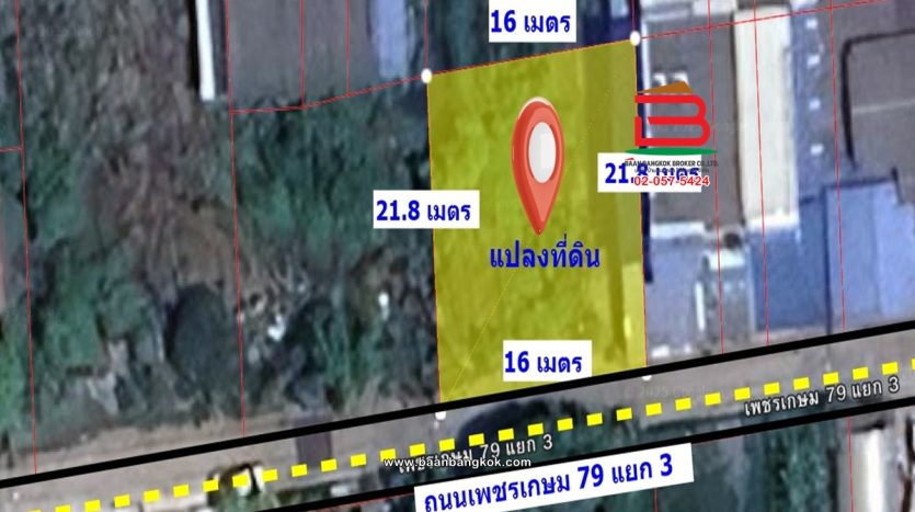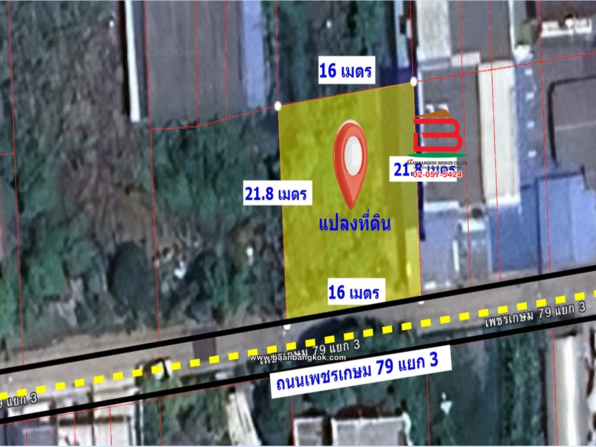 ประเภททรัพย์สิน : ที่ดินเปล่า ทำเลดีมาก ซอยเพชรเกษม 79 แยก 3 จากปากซอยเพชรเกษม 79 เพียง 300 เมตร ที่ดินทรงสี่เหลี่ยนผืนผ้า หน้ากว้าง 16 ลึก 21.8 เมตร *จุดเด่น : อยู่ในแหล่งชุมชน ใกล้มหาวิทยาลัย และสำนักงานเขต
