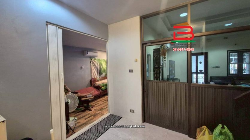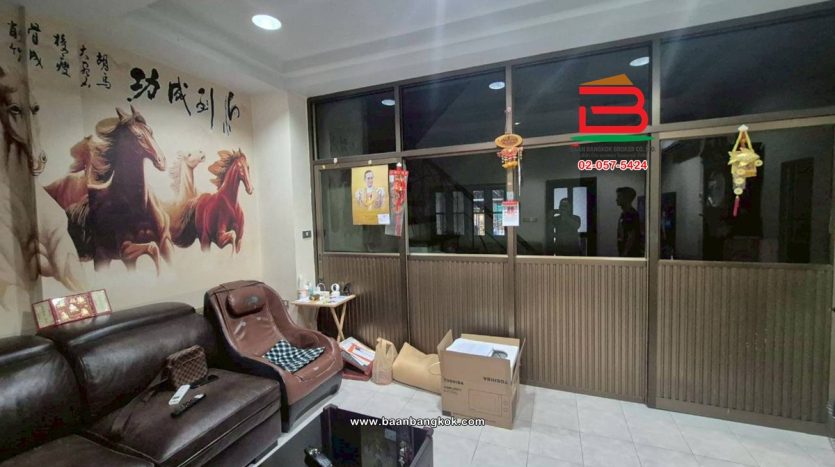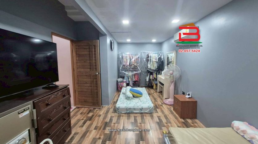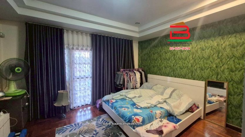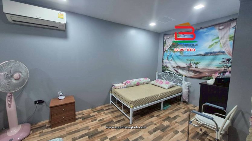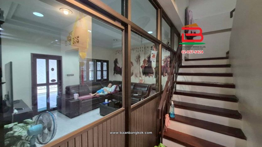 การตกแต่งชั้นล่าง มี 2 ห้องนอน 1 ห้องน้ำ 1 ห้องครัว และโถงรับแขก กั้นเป็นห้องกระจกแบ่งโซนเป็นสัดส่วน ติดมุ้งลวด-เหล็กดัด และปั้มน้ำ-แท็งค์น้ำ ในบ้านจอดรถได้ 1 คัน หน้าบ้านจอดได้ 1-2 คัน ชั้นบน มี 3 ห้องนอน มีระเบียง หน้าและหลังห้อง มี 1 ห้องน้ำ
