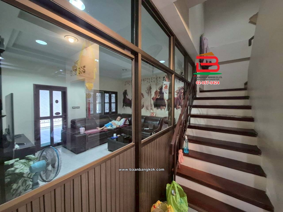 การตกแต่ง: ชั้นล่าง มี 2 ห้องนอน 1 ห้องน้ำ 1 ห้องครัว และโถงรับแขก กั้นเป็นห้องกระจกแบ่งโซนเป็นสัดส่วน ติดมุ้งลวด-เหล็กดัด และปั้มน้ำ-แท็งค์น้ำ ในบ้านจอดรถได้ 1 คัน หน้าบ้านจอดได้ 1-2 คัน ชั้นบน มี 3 ห้องนอน มีระเบียง หน้าและหลังห้อง มี 1 ห้องน้ำ