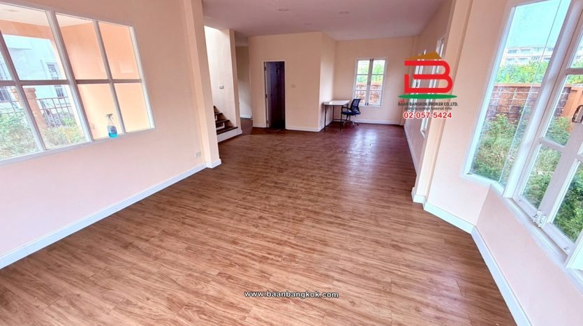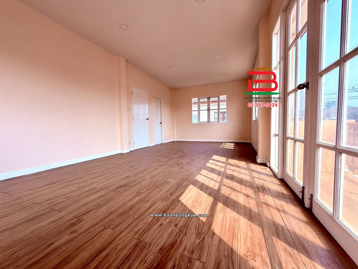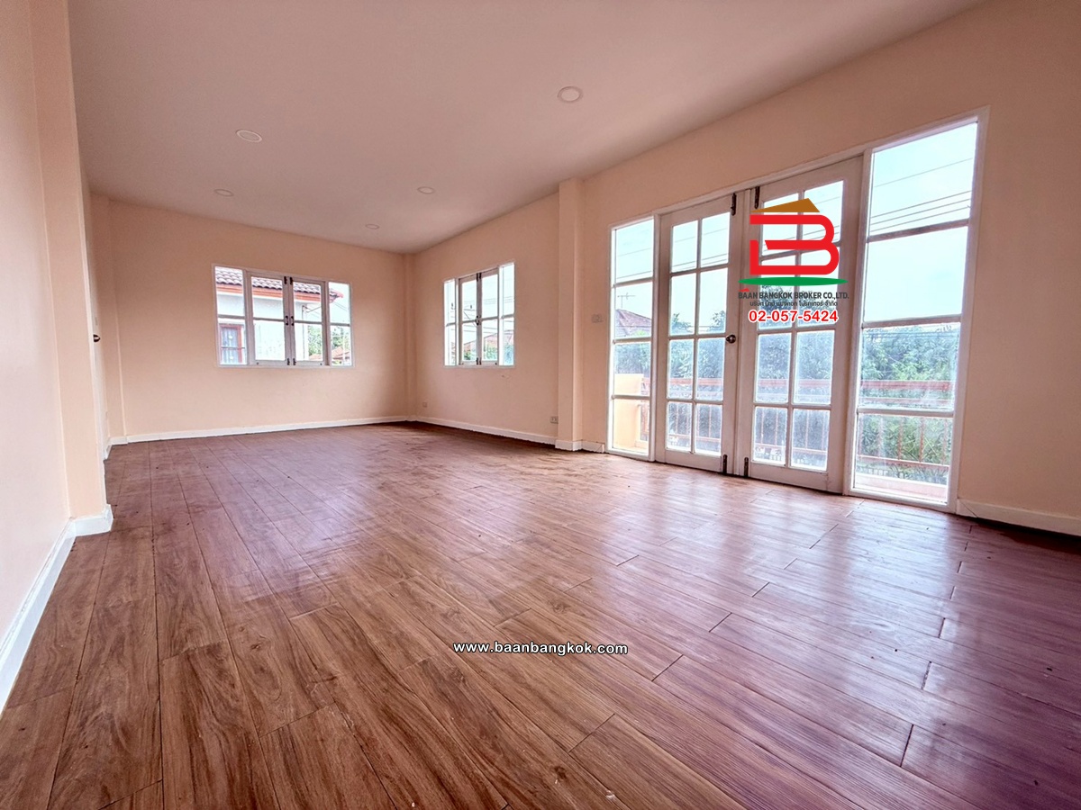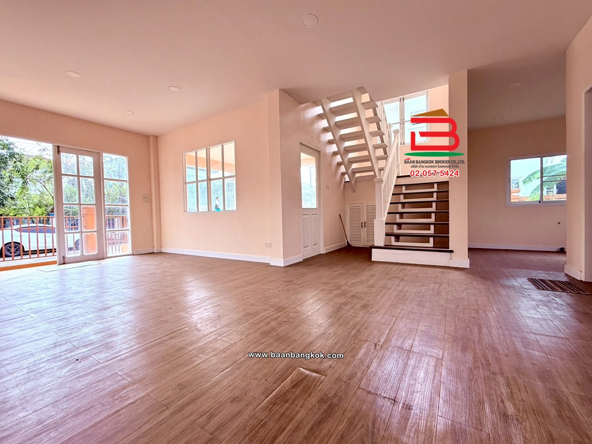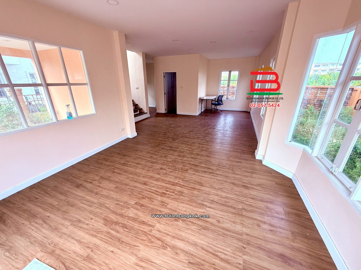 การตกแต่ง: รีโนเวทใหม่ทั้งหลัง สภาพดี พร้อมอยู่ บรรยากาศภายในบ้านร่มรื่น ชั้นล่างของบ้านปูด้วยกระเบื้องแกรนิตโต้ ชั้นบนปูด้วยไม้ปาเก้ บริเวรด้านข้างของบ้านกว้างขวาง หน้าบ้านติดกับถนนเมน