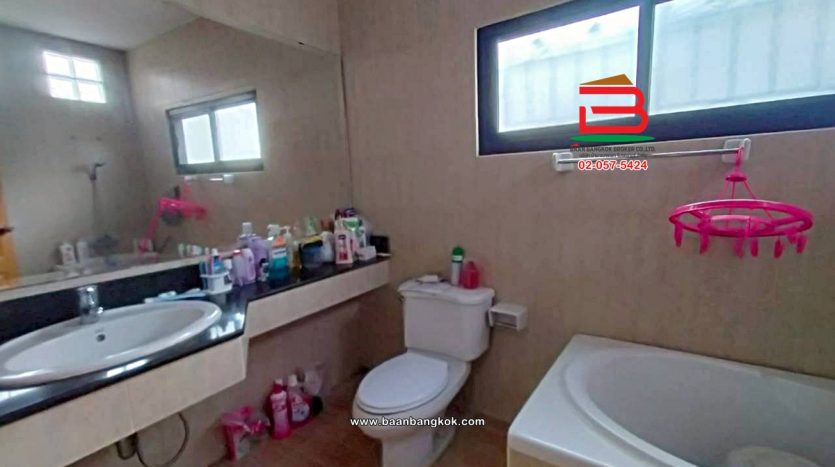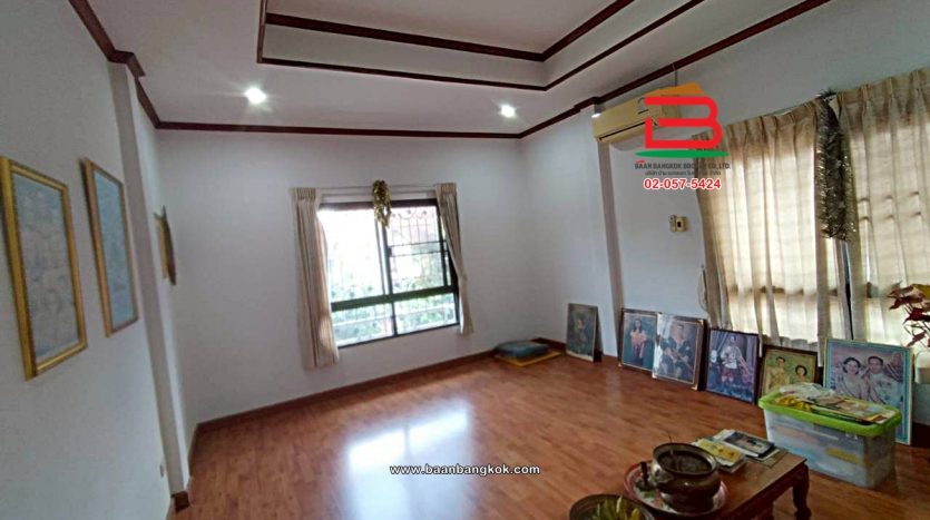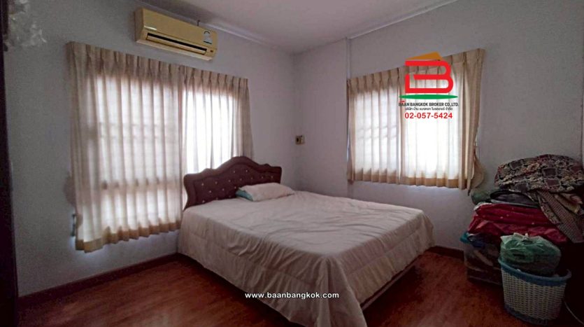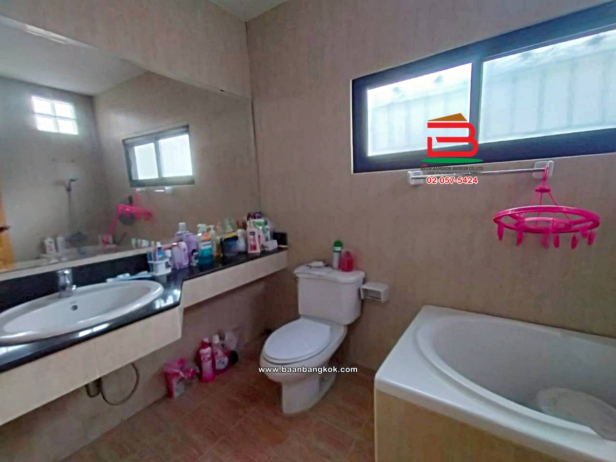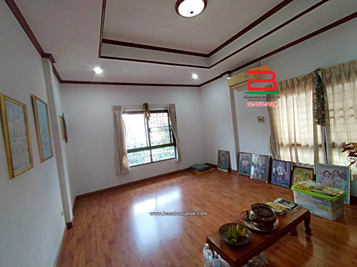 การตกแต่งบ้านพร้อมอยู่ พื้นชั้นล่างปูกระเบื้องแกรนิตโต้ พื้นชั้นบนปูลามิเนต ห้องโถงรับแขกตกแต่งฝ้าหลุม โคมไฟ ต่อเติมครัวไทยหลังบ้าน ติดมุ้งลวด+เหล็กดัด มีปั้มน้ำ+แท็งค์น้ำ แอร์ 2 เครื่อง ต่อเติมข้างบ้าน โซนซักล้าง ห้องนอนมีระเบียงกว้าง