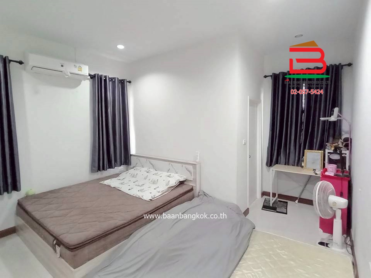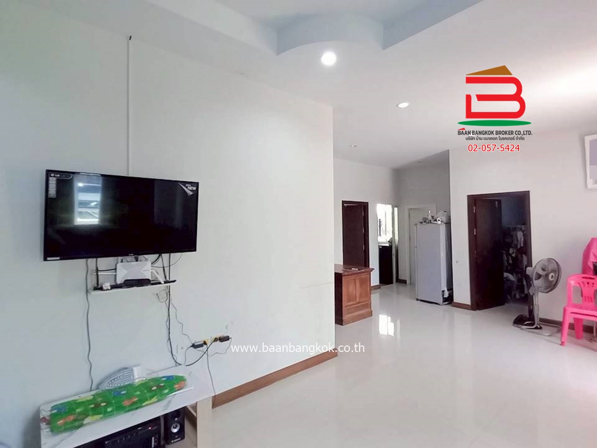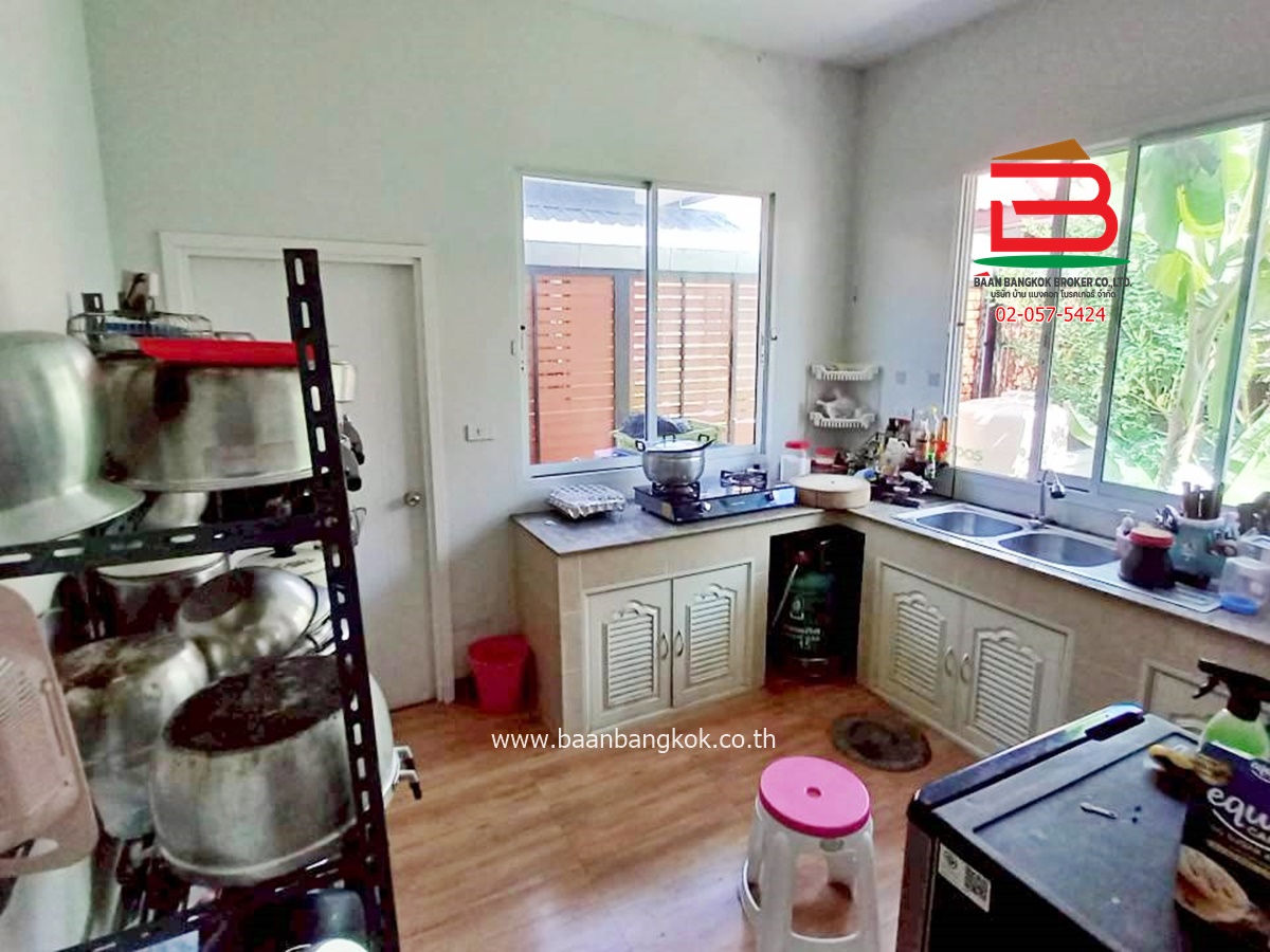 การตกแต่ง : มีพื้นที่โซนหน้าบ้านและบริเวณข้างบ้าน โดยรอบสามารถปลูกผักสวนครัวหรือไม้ดอกไม้ประดับ หรือไว้เป็นมุมพักผ่อนและมิตติ้งกลางแจ้ง ลานบาร์บีคิวได้ ภายในบ้านพื้นปูกระเบื้องแกรนิตโต้ ส่วนฝ้าเพดานจะเป็นฝ้าเรียบ ต่อเติมห้องครัวพร้อมเคาน์เตอร์ ติดมุ้งลวด+ปั้มน้ำ+แท็งค์น้ำ+ม่านกันแสงแดดให้เรียบร้อย แถมแอร์ 2 เครื่อง พร้อมสิ่งอำนวยความสะดวกครบครัน อาทิ สนามเด็กเล่น, CCTV, รปภ.