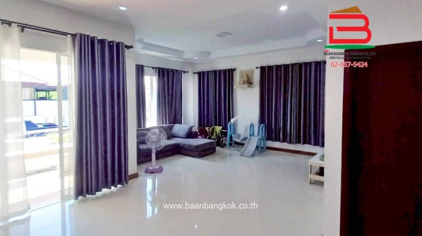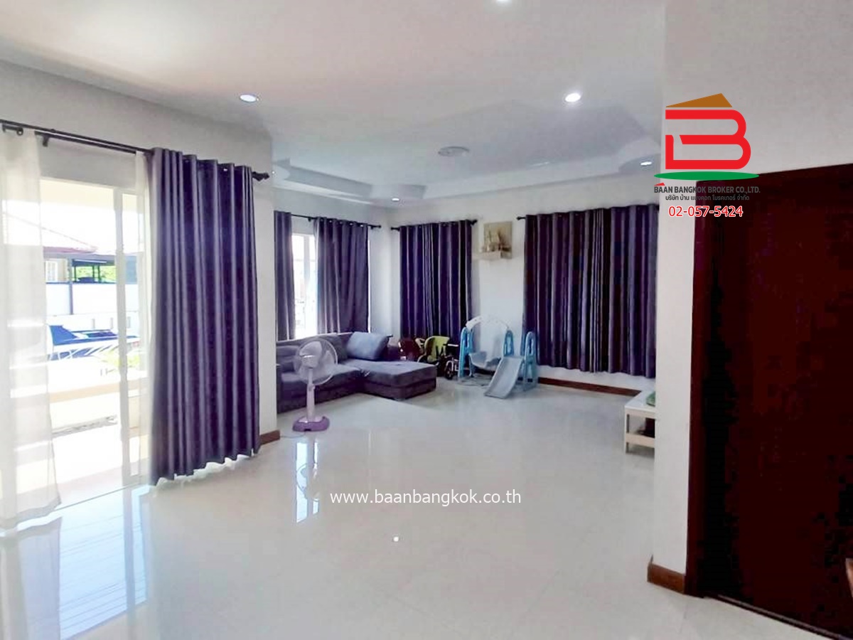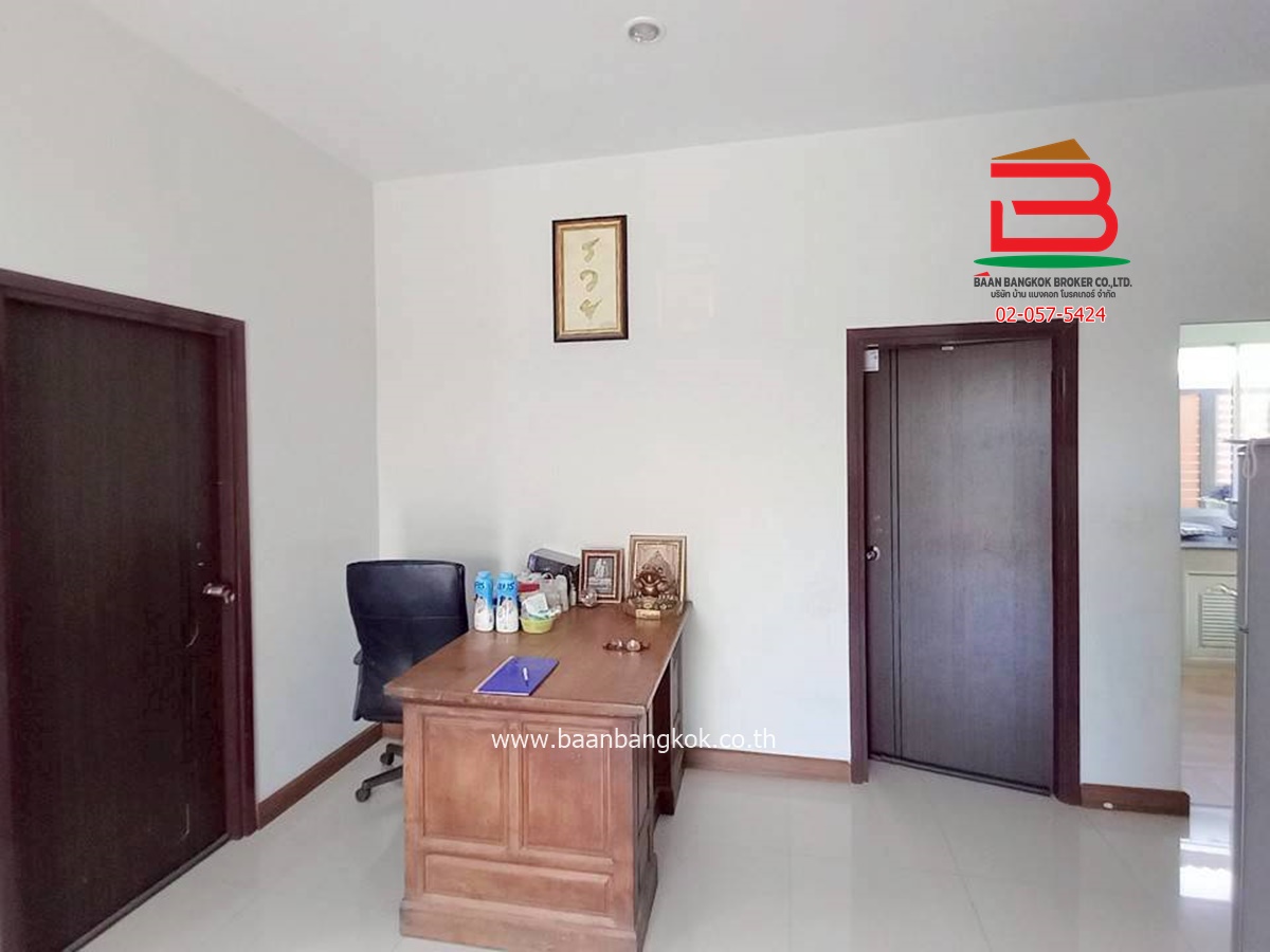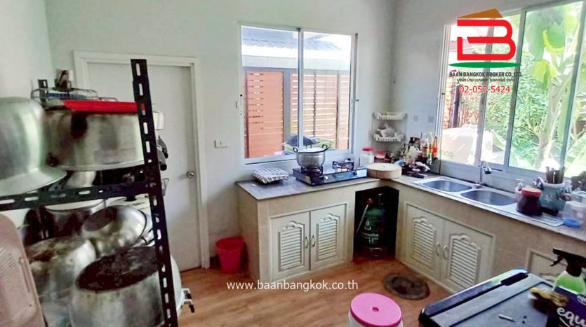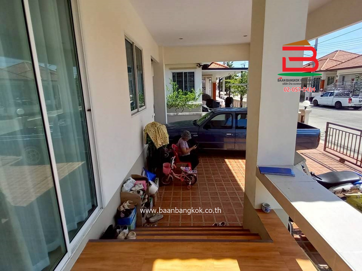 การตกแต่ง : มีพื้นที่โซนหน้าบ้านและบริเวณข้างบ้าน โดยรอบสามารถปลูกผักสวนครัวหรือไม้ดอกไม้ประดับ หรือไว้เป็นมุมพักผ่อนและมิตติ้งกลางแจ้ง ลานบาร์บีคิวได้ ภายในบ้านพื้นปูกระเบื้องแกรนิตโต้ ส่วนฝ้าเพดานจะเป็นฝ้าเรียบ ต่อเติมห้องครัวพร้อมเคาน์เตอร์ ติดมุ้งลวด+ปั้มน้ำ+แท็งค์น้ำ+ม่านกันแสงแดดให้เรียบร้อย แถมแอร์ 2 เครื่อง พร้อมสิ่งอำนวยความสะดวกครบครัน อาทิ สนามเด็กเล่น, CCTV, รปภ.